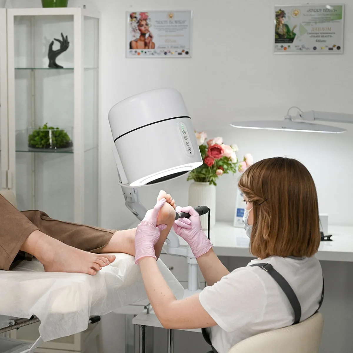 Pensé pour un usage intensif, il combine une puissante technologie cyclonique, un filtre HEPA-12 haute performance et une désinfection par UV-C pour capter jusqu’à 99,8 % des particules fines, germes, allergènes et poussières issues des prestations ongulaires.