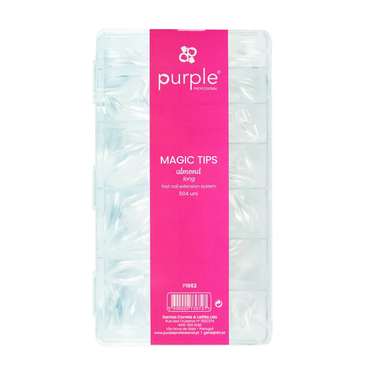 Boite de 504 capsules américaines MAGIC TIPS AMANDE de Purple. Ces capsules de forme amande sont idéales pour la pose classique ou américaine et permettent de créer des extensions en un temps record. Elles sont souples, de couleur transparente et numérotées de 0 à 11 (12 tailles différentes).