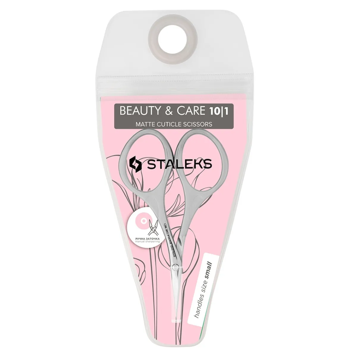 Ciseaux à cuticules mats BEAUTY & CARE 10 Type 1 de chez Staleks. Conçus pour couper les petites peaux du pourtour de l’ongle en toute sécurité grâce à son excellente qualité de coupe.