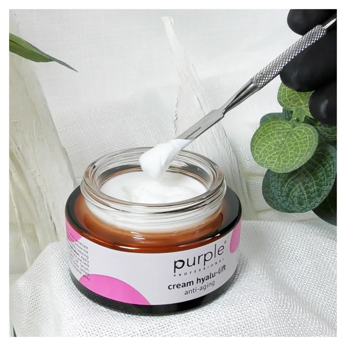Crème anti-âge pour le visage Hyalu-Lift 35+ de la marque Purple Professional. Pot de 50 ml. Cette crème a été conçue pour redonner vitalité et éclat aux peaux matures. Avec de l’acide hyaluronique, de la niacinamide et de la vitamine E, sa formule pénètre en profondeur, procurant un effet lifting visible et aide à lisser les ridules et les rides d’expression. En plus de minimiser les signes du vieillissement cutané, Hyalu-Lift offre une hydratation intense. Sa texture légère à absorption rapide est idéale pour les soins quotidiens. Cette crème laisse la peau plus ferme, plus éclatante et revitalisée.