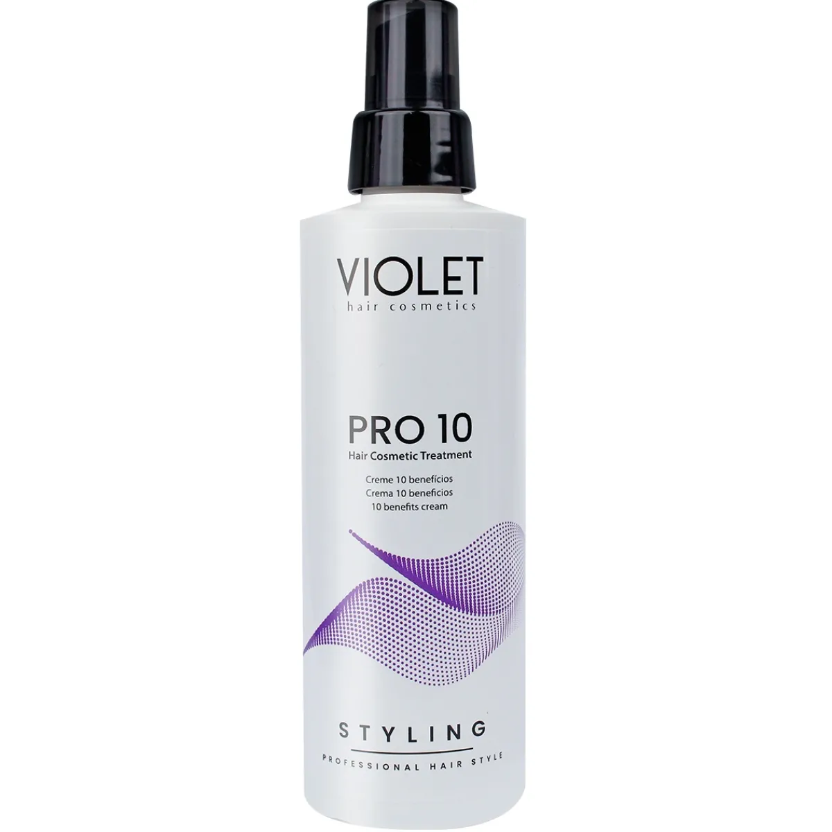 Crème de soin capillaire PRO 10 sans rinçage de la marque Violet. Formule crémeuse enrichie en nutriments exclusifs qui réparent, lissent et protègent vos cheveux. La soie apporte brillance et douceur tout en créant un film protecteur. Le panthénol, dérivé de la provitamine B5, hydrate, réduit les pointes fourchues et ajoute de la brillance. Les polymères quaternaires embellissent les cheveux et le filtre UV aide à protéger leur couleur. 200 ml.