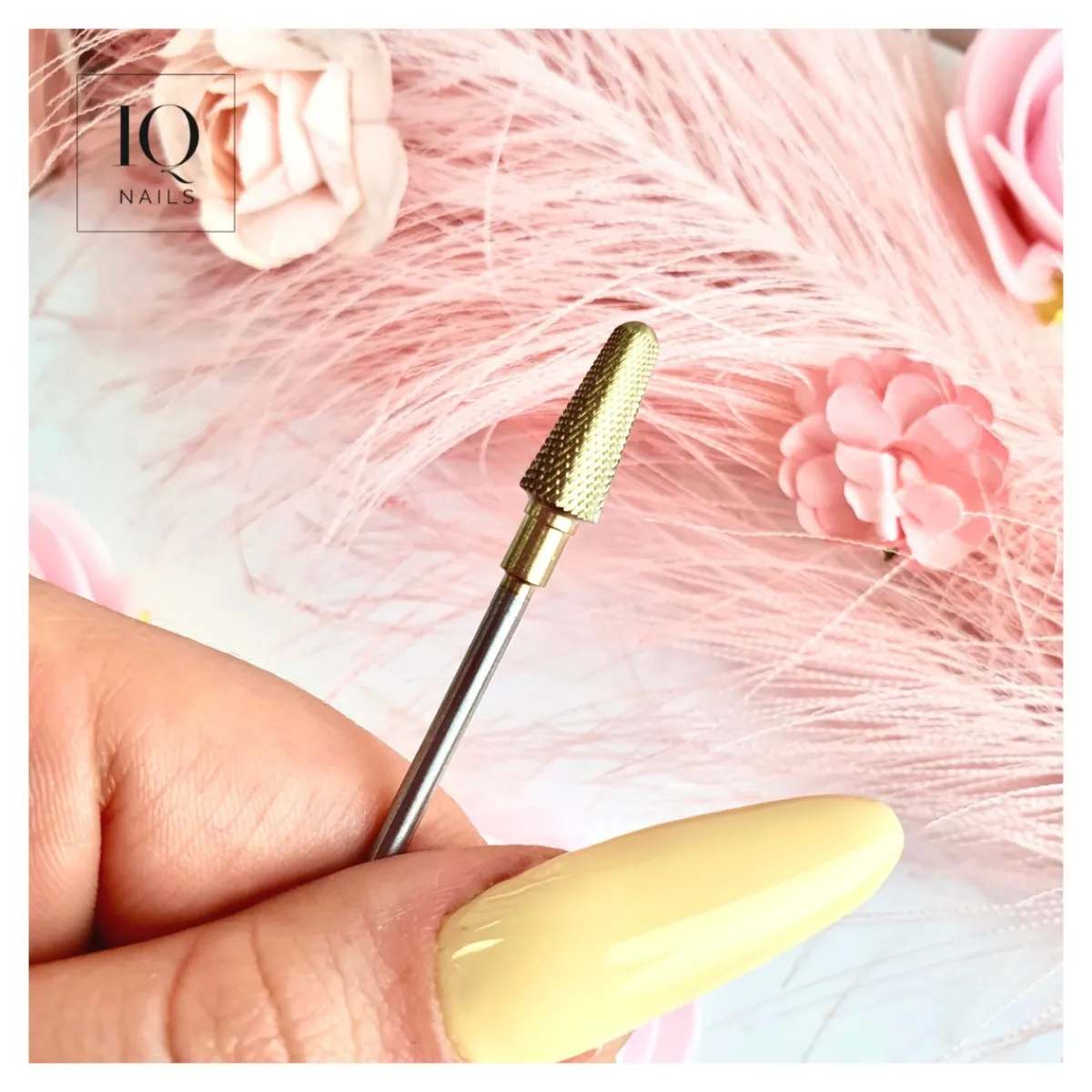 Fraise en carbure forme conique de la marque IQ Nails. Embout arrondi sécurisé permettant le retrait du semi-permanent et du gel. Elle est également idéale pour la mise en forme de la construction en gel, acrygel ou résine tout en douceur. La fraise a un revêtement spécial en NANO zirconium qui garantit :