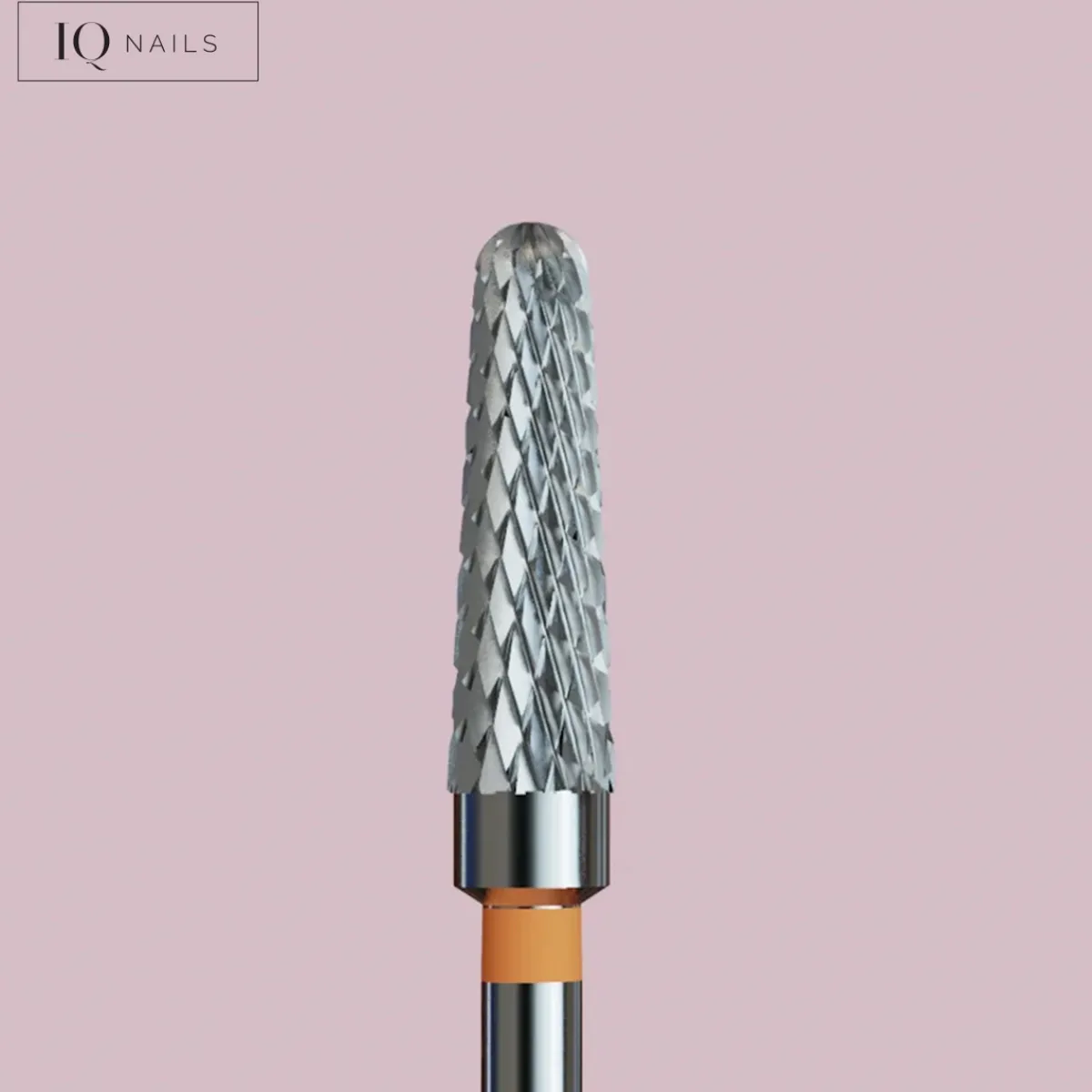 Fraise en carbure forme conique de la marque IQ Nails. Embout arrondi sécurisé aux dents de taille moyenne permettant le retrait rapide du semi-permanent, du gel, de la résine et de l’acrygel. La bague orange indique qu’il s’agit d’un embout pour gauchers. Ne chauffe pas pendant la dépose et le ponçage. Cet embout est également idéal pour travailler sur les cors, les callosités et les ongles avec mycose. Diamètre de la tête : 4 mm.