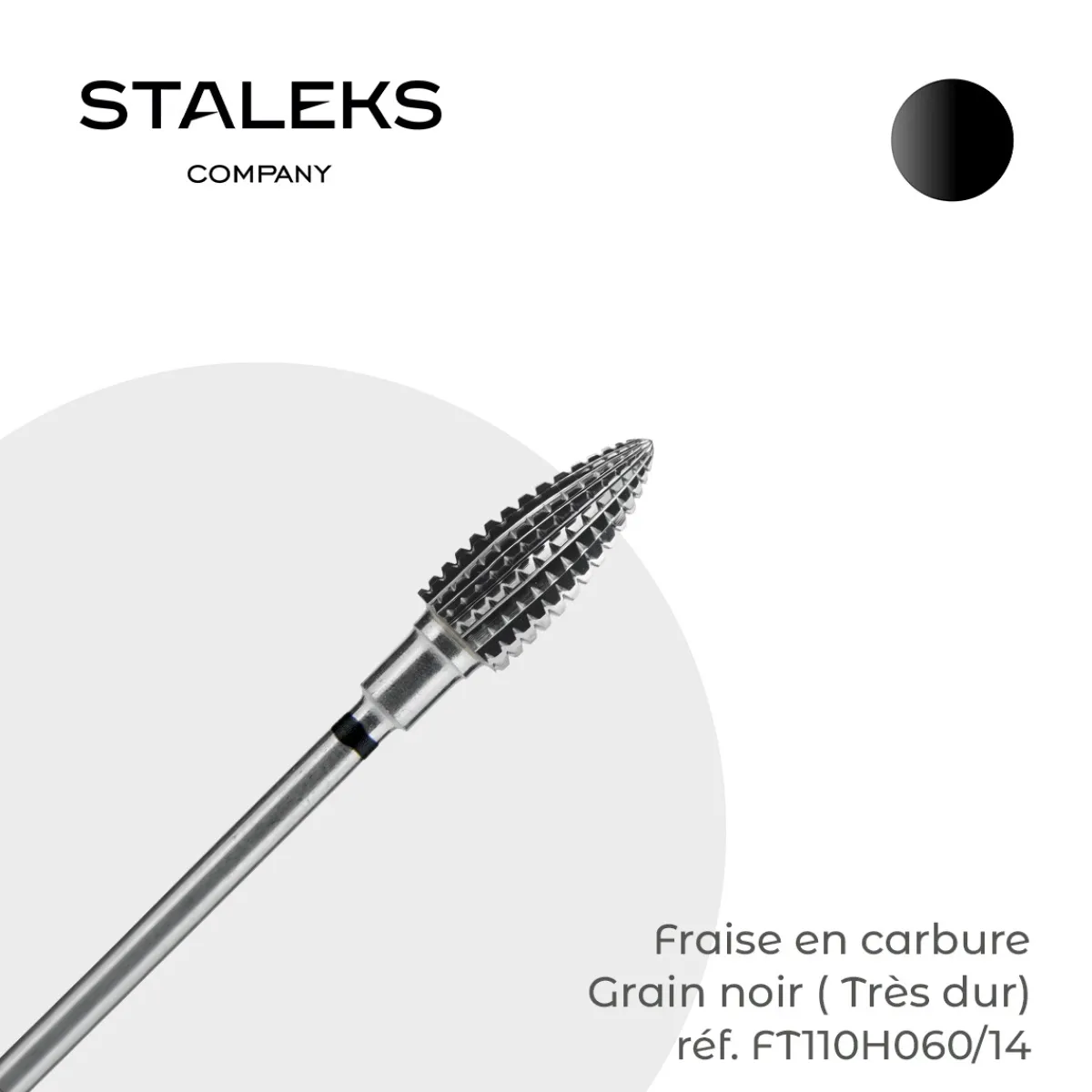 Fraise en carbure grain noir (très dur) de la marque Staleks. Embout arrondi sécurisé aux dents larges permetta…