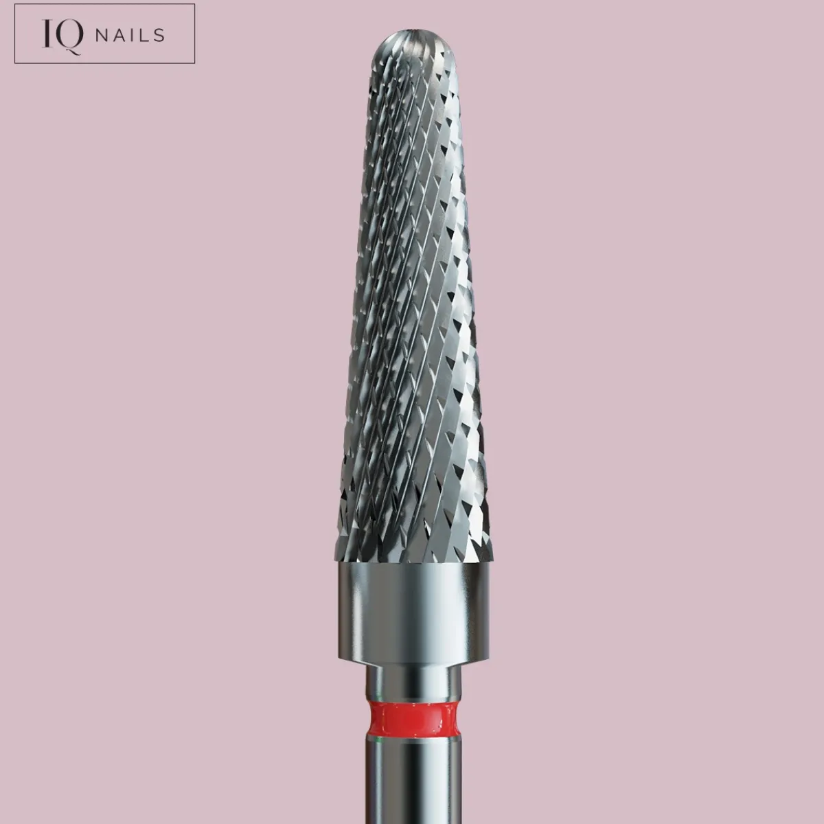 Fraise en carbure grain rouge (doux) forme conique de la marque IQ Nails. Embout arrondi sécurisé. Ne chauffe pas pendant la dépose et le ponçage. Cet embout permet de retirer le semi-permanent et le gel (fine couche) en douceur, et d’affiner la forme de la construction. Cet embout est également idéal pour travailler sur les cors, les callosités et les ongles avec mycose.