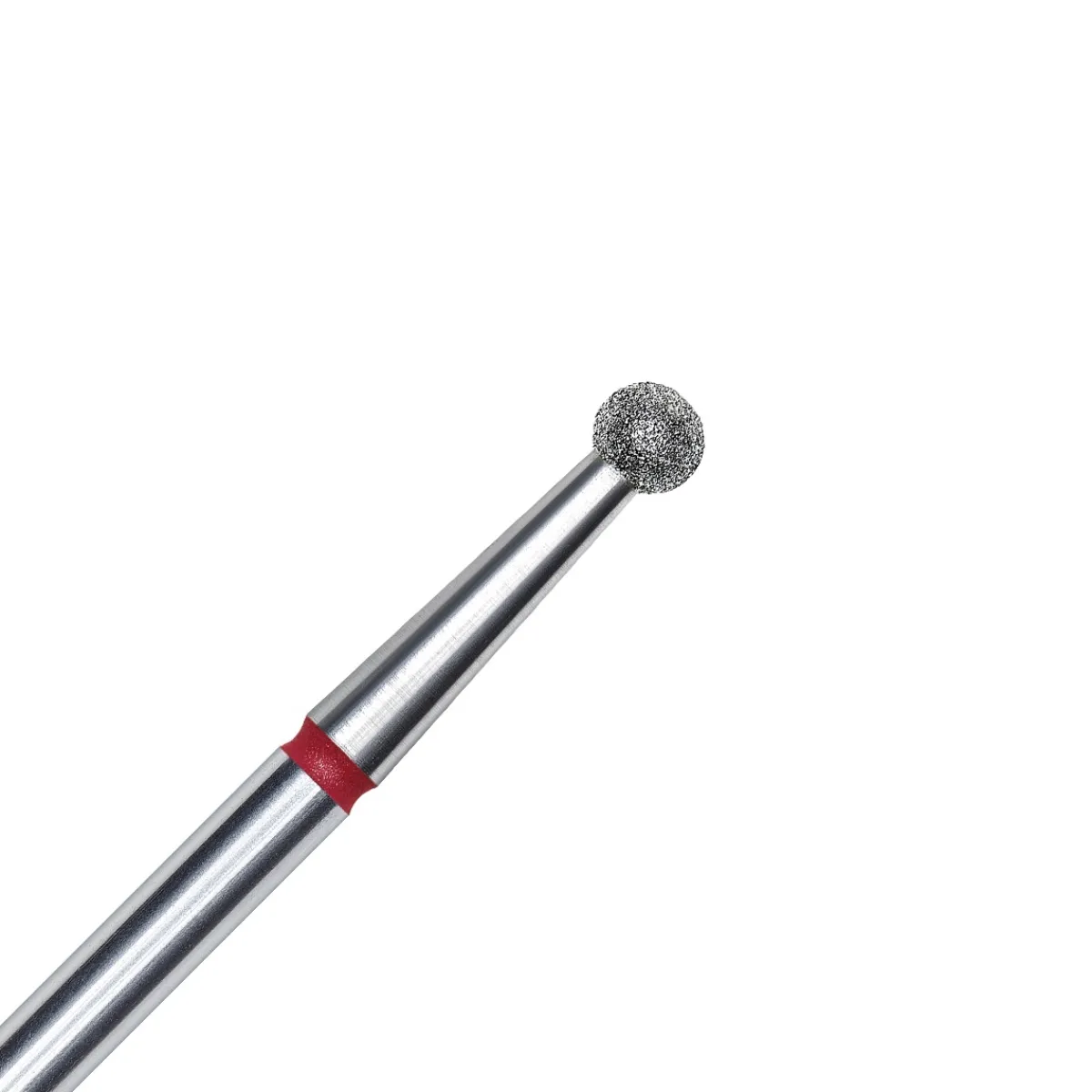 Fraise en diamant en forme de boule de la marque Staleks. Grain rouge (doux). Diamètre : 0,27 cm. S’utilise pour la coupe des cuticules sans pince à envies en technique de manucure russe. Elle permet également de polir la peau et de retirer les callosités sur le pourtour de l’ongle. Convient pour la manucure et la pédicure.
