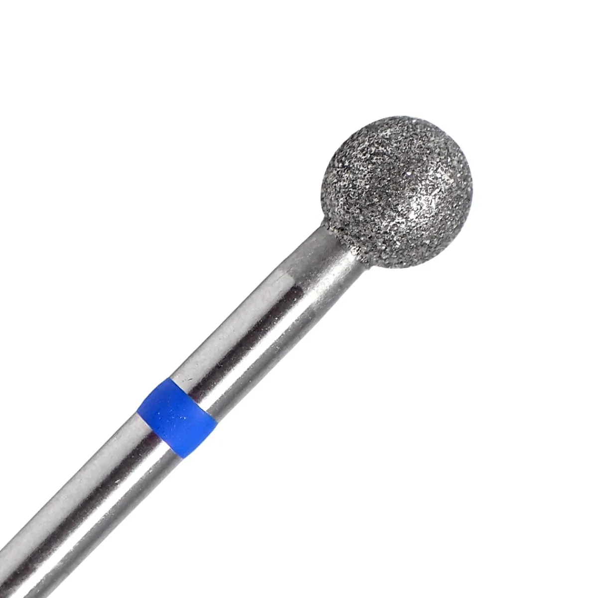 Fraise en diamant forme boule. Grain bleu (Moyen) parfait pour l’ongle avec beaucoup de cuticules. Diamètre : 0,50 cm. S’utilise pour la coupe des cuticules sans pince à envies en technique de manucure russe.