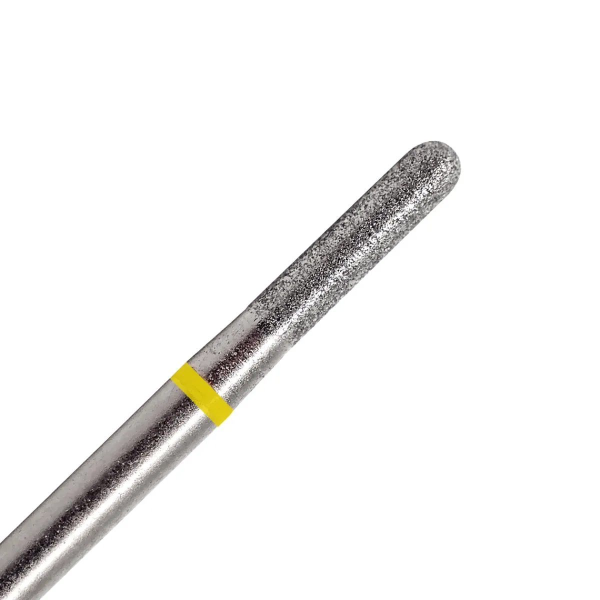Fraise en diamant forme tonneau. Grain jaune (très doux) parfait pour les ongles fins et fragiles. Embout arron…