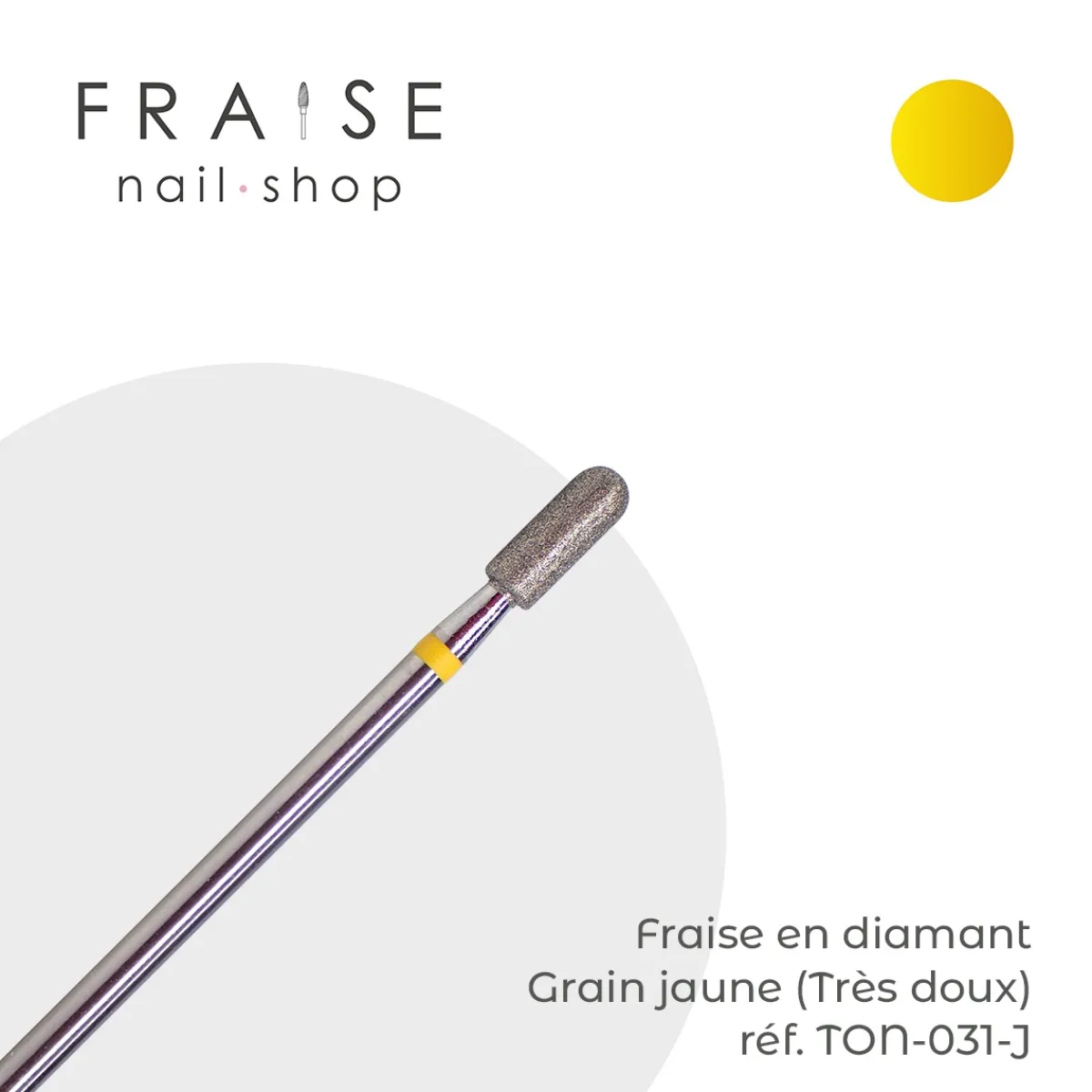 Fraise en diamant forme tonneau. Grain jaune (Très doux) parfait pour les ongles naturels fins et fragiles. Embout…