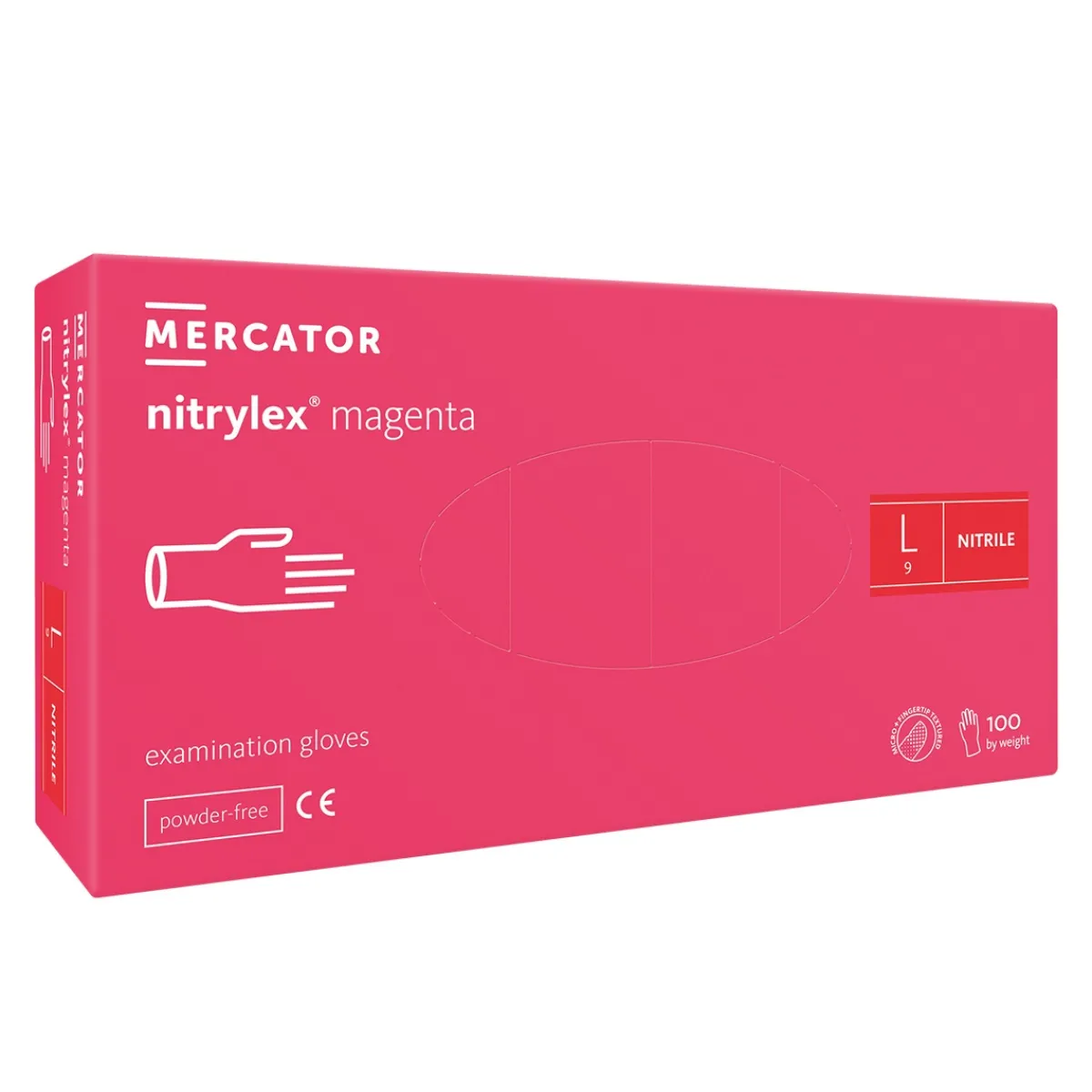 Boite de 100 gants taille L (8/9) MERCATOR Nitrylex de couleur Magenta. Nos gants de protection de haute qualité sont en nitrile non-poudrés, ambidextres et à usage unique. Ils sont testés et certifiés contact alimentaire et destinés autant à la protection de l’opérateur qu’à la protection du produit manipulé. Ils permettent de travailler proprement tout en vous protégeant des agents nocifs et ils offrent une barrière de protection microbiologique contre les bactéries, les champignons et les virus. La performance de protection a été confirmée par des tests rigoureux. Leur matière confortable et robuste les rend agréables à porter. Ils sont micro-texturés avec une texture supplémentaire à l’extrémité des doigts pour une meilleure préhension et une prise sûre lors des travaux de précision. Téléchargez la fiche technique dans l’onglet « Documents Joints ».