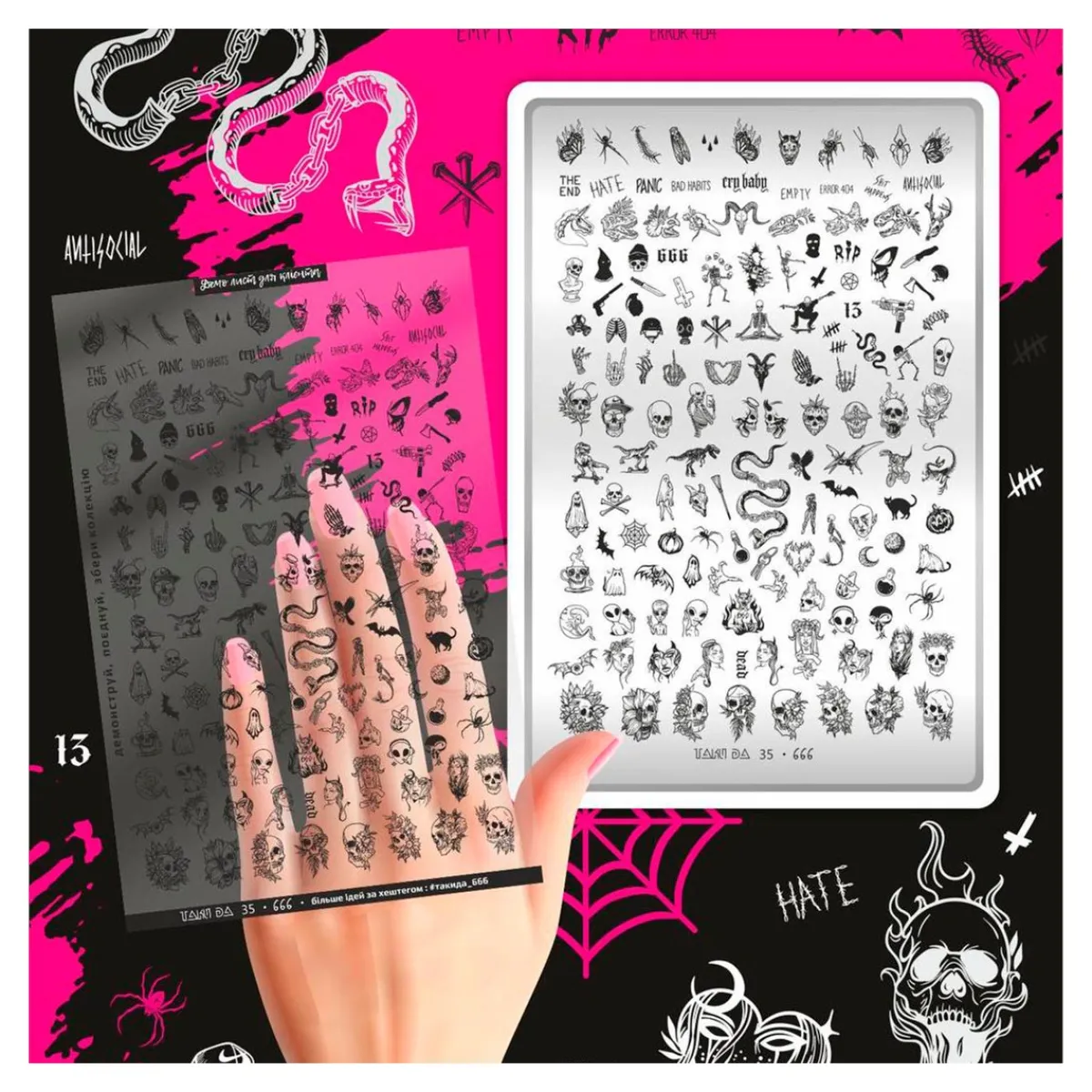 Grande Plaque de STAMPING + Pochoir – 666 | Taki Da New