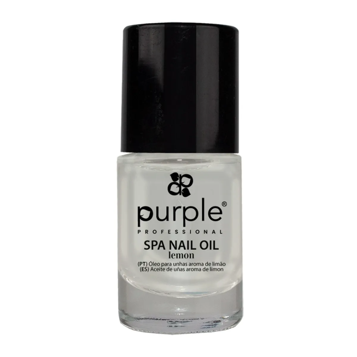 Huile pour les ongles et les cuticules parfumée au citron, de la gamme Purple Spa. Flacon de 10 ml. Application avec un pinceau.