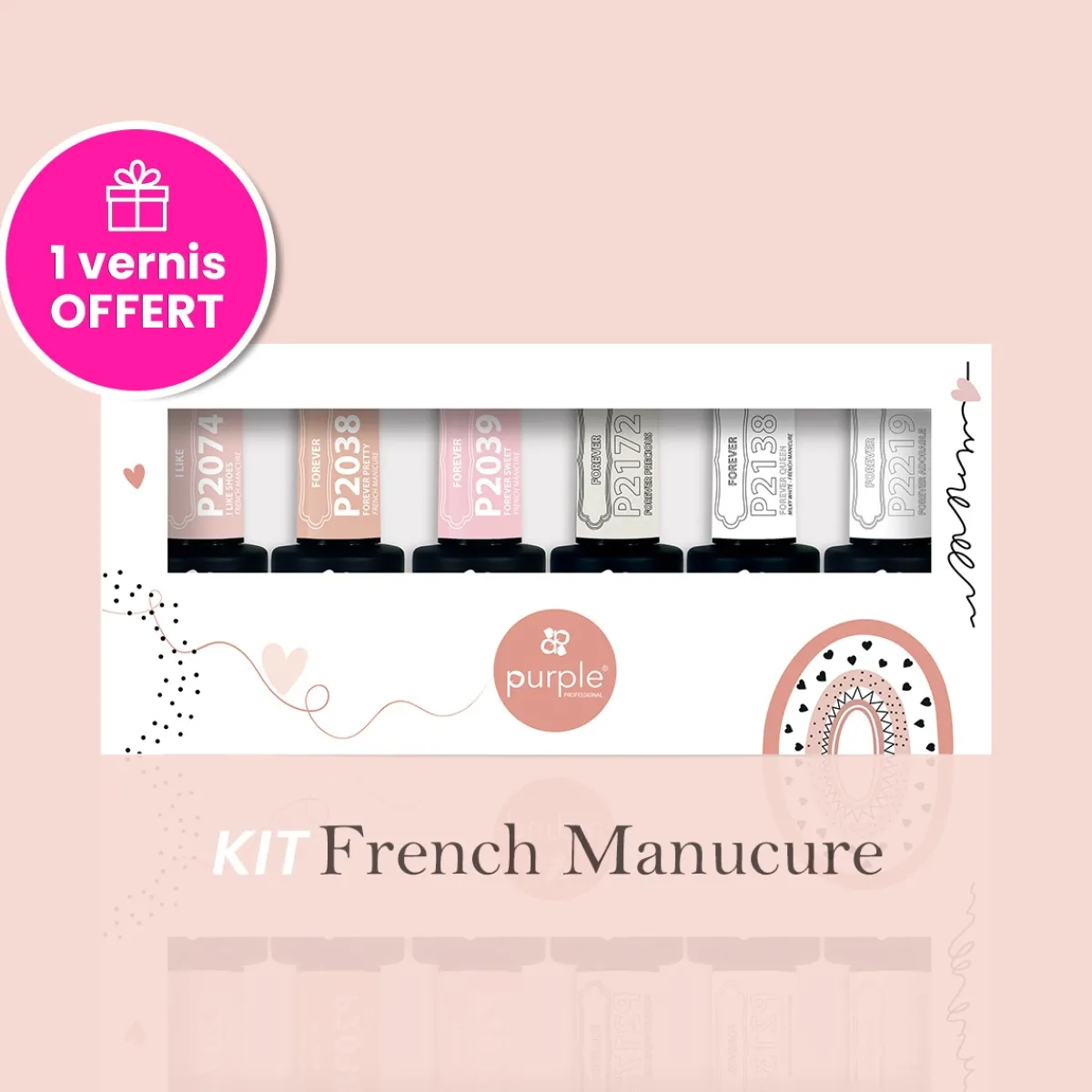Kit spécial French manucure comprenant 6 vernis semi-permanents Purple Professional de différentes collections :