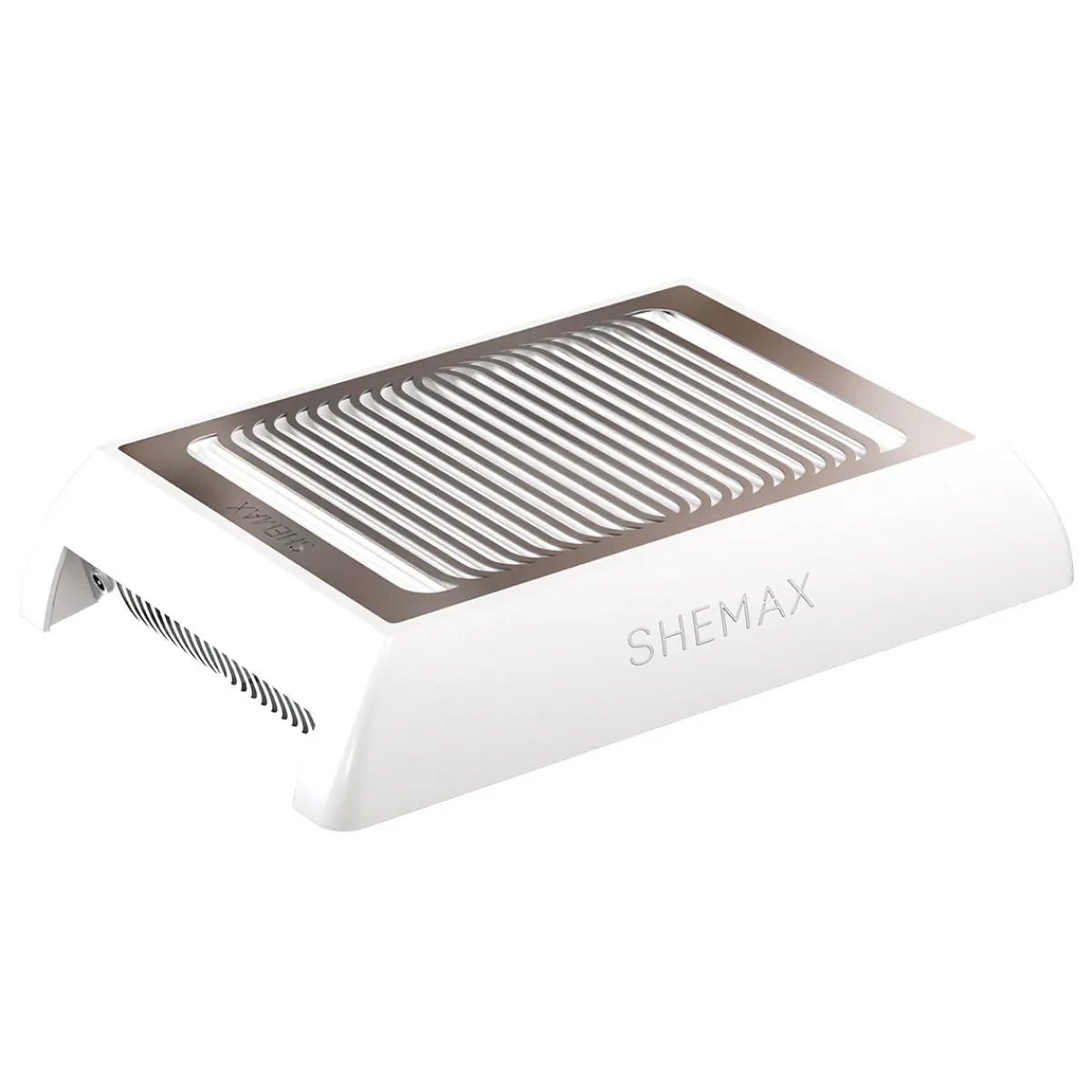 L’aspirateur de table Shemax est très performant avec sa puissance de 24W. Grâce au moteur centrifuge et à la technologie « air bowl », le flux d’air capte la poussière uniformément sur tout le périmètre du modèle et la redirige vers le centre comme une tornade à une vitesse d’aspiration de 2,2 à 3,7 m / s ce qui vous assure une protection maximale contre la poussière à manucure durant le limage ou la dépose à la ponceuse. Grâce à sa large zone d’aspiration d’une surface de 24,5 x 17,5 cm, la hotte empêche littéralement la poussière de monter dans les airs et de se déposer sur les objets. La durée de fonctionnement continu du moteur peut aller jusqu’à 6 ans. L’aspirateur contient un filtre dans le carton et le câble d’alimentation est fourni. Nous proposons également des filtres de rechange s’il doit être remplacé sachant que la durée de vie d’un filtre est de 3 mois (pour 4-5 clients par jour en moyenne).