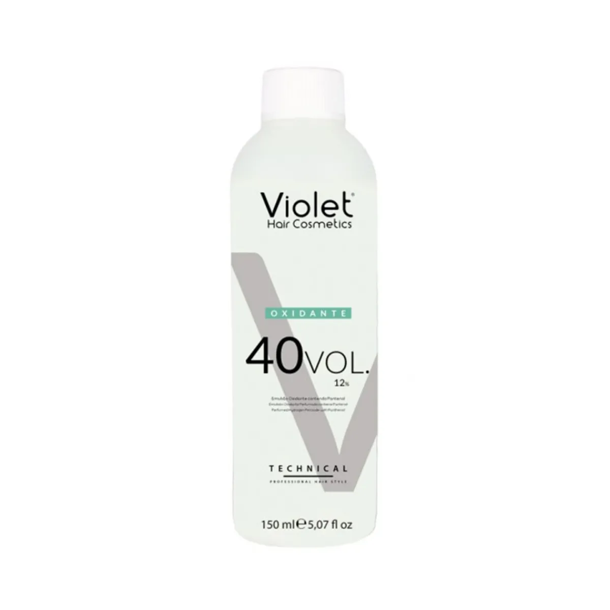 Oxydant 40 Volumes 12% de la marque Violet. Cette émulsion oxydante crémeuse et parfumée, contient du panthénol (Vitamine B5) pour prendre soin de vos cheveux. 150 ml.