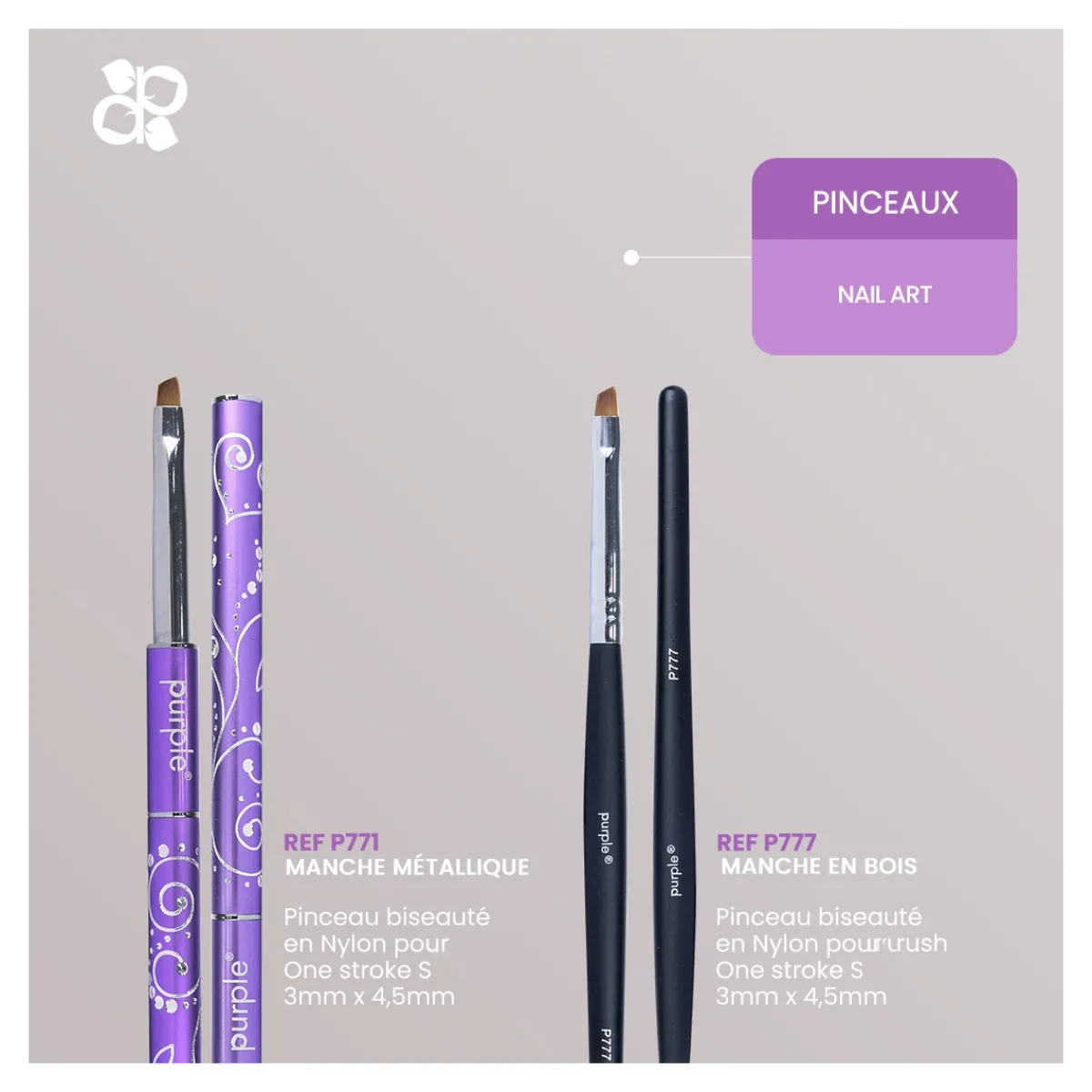 PINCEAU NAIL ART en Nylon ONE STROKE S : 3 x 4,5mm – Manche Métallique | Purple Professional Hot