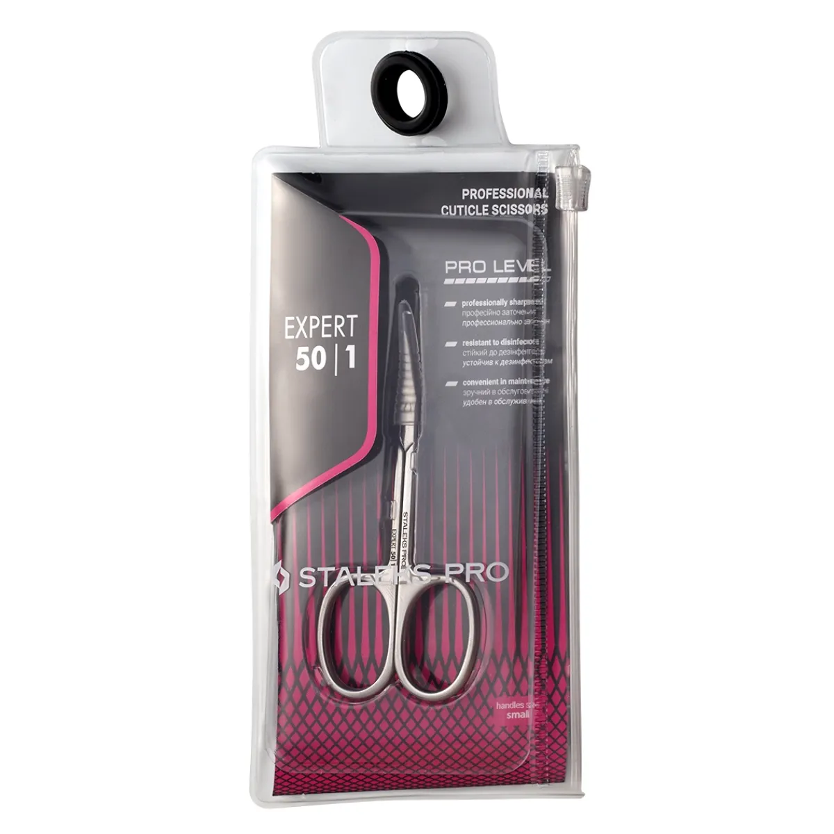 Ciseaux à cuticules professionnels Expert 50 Type 1 de chez Staleks. Conçus pour couper les petites peaux du pourtour de l’ongle en toute sécurité grâce à son excellente qualité de coupe.