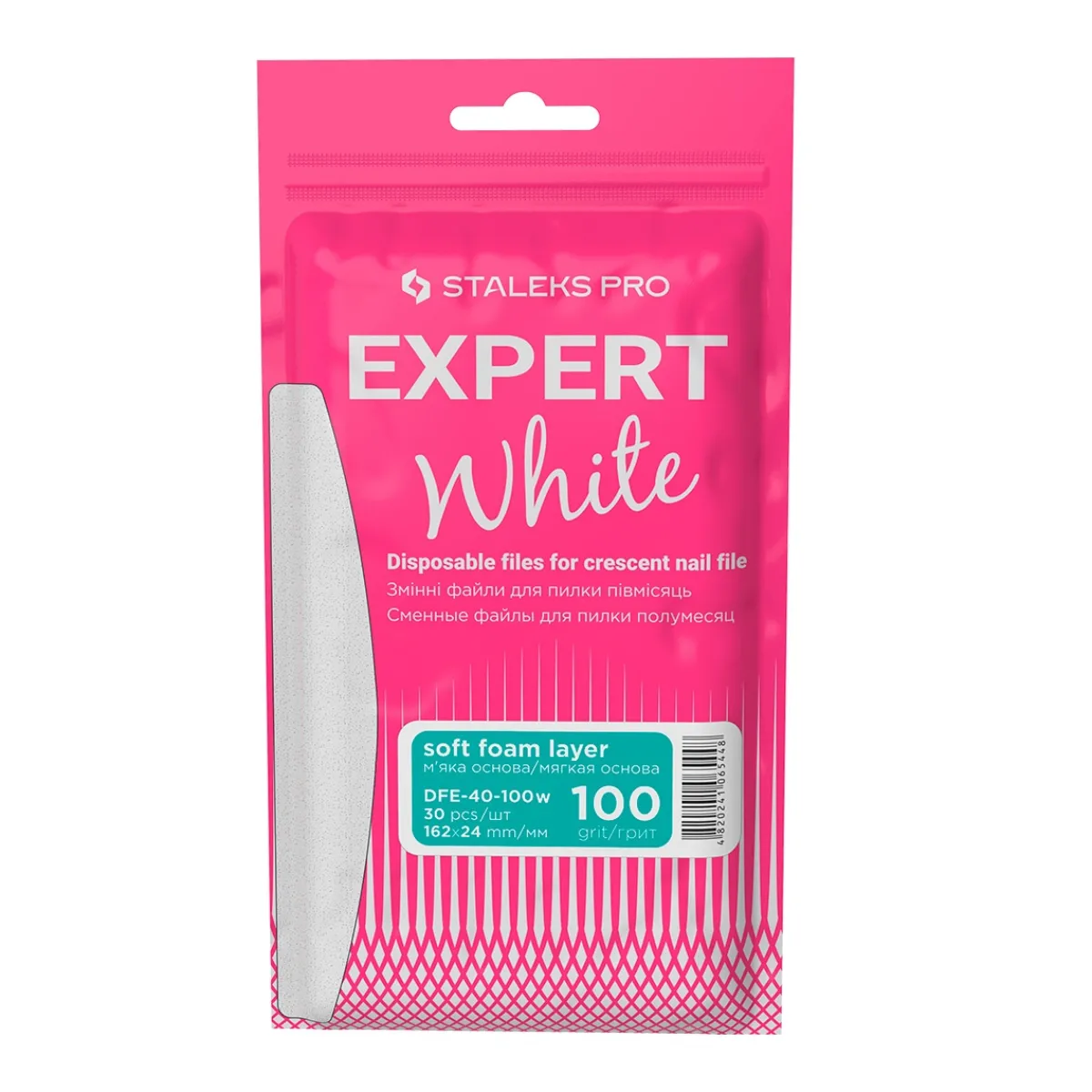 Limes Recharges adhésives avec une base de mousse fine et souple, Grain 100 EXPERT 40 de chez Staleks. Lot de 30 pièces. Conçues pour les bases demi-lune Staleks.