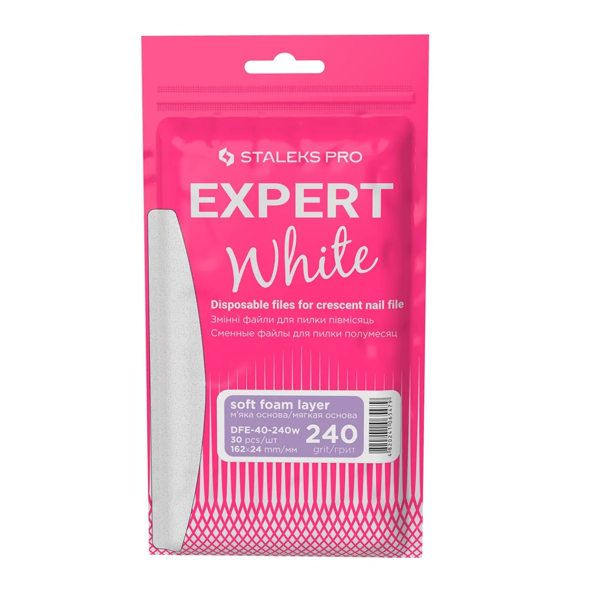 Limes Recharges adhésives avec une base de mousse fine et souple, Grain 240 EXPERT 40 de chez Staleks. Lot de 30 pièces. Conçues pour les bases demi-lune Staleks.
