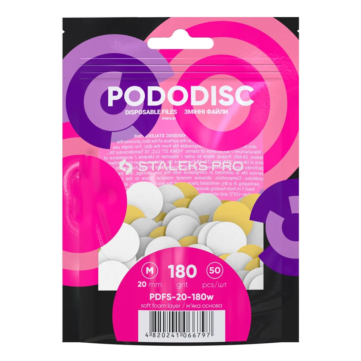 Limes recharges avec une base de mousse souple, pour disque pédicure PODODISC M de chez Staleks. Limes Blanches Grain 180. Lot de 50 pièces. Elles se collent sur la base métallique Pododisc de taille M de 20 mm (non fournie).