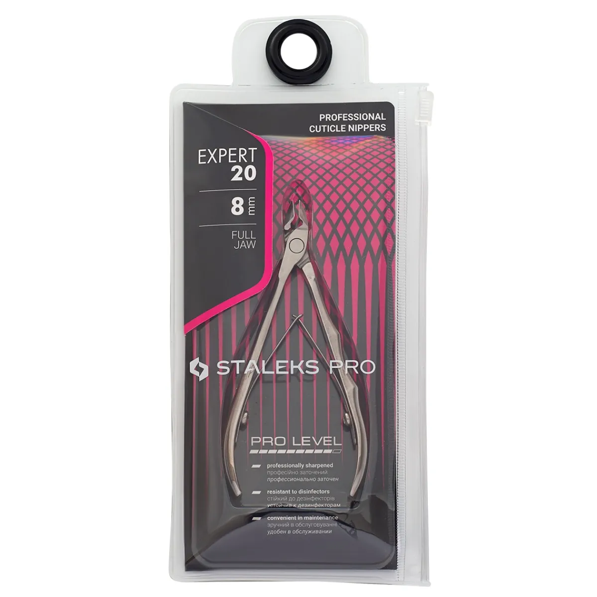 Pince à cuticules professionnelle Expert 20 – 8 mm de chez Staleks. Conçue pour retirer les petites peaux du pourtour de l’ongle en toute sécurité grâce à son excellente qualité de coupe.