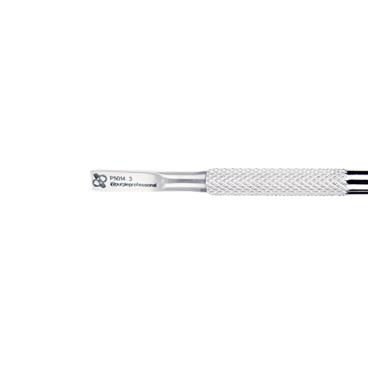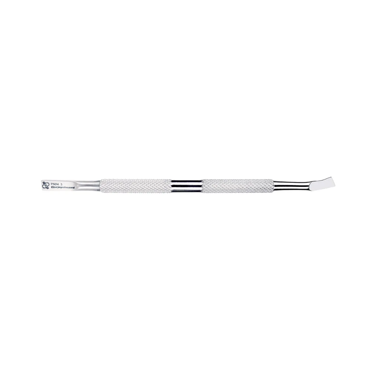 Repousse cuticules Premium 3 de Purple. Pusher avec une spatule plate rectangulaire d’un côté et une lame en biais de l’autre. La spatule plate rectangulaire s’adapte à la forme de l’ongle permettant de soulever et de pousser les cuticules pour son retrait ultérieur. La lame permet quant à elle d’éliminer les cuticules qui adhèrent à l’ongle, et de nettoyer l’ongle en surface, au niveau des replis latéraux et sous le bord libre. Convient pour la manucure russe et combinée. Design fonctionnel, précis et robuste. Conçu pour un usage professionnel. Il peut être soumis à tous types de désinfection. Fini mat.