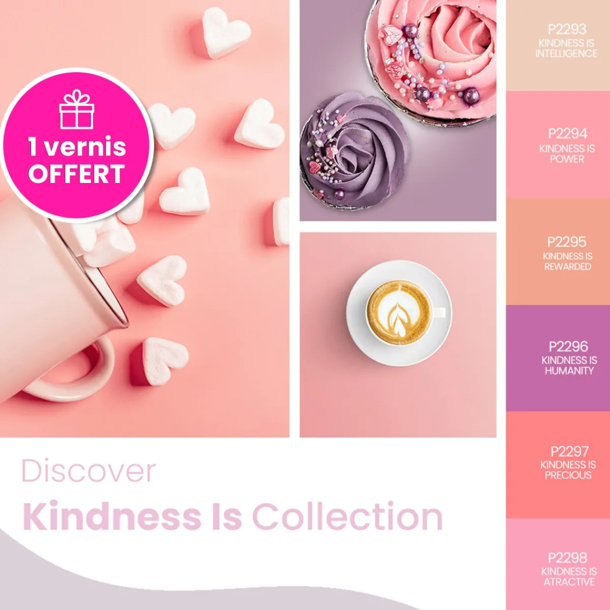 Set de 6 vernis semi-permanents de la Collection KINDNESS IS comprenant :