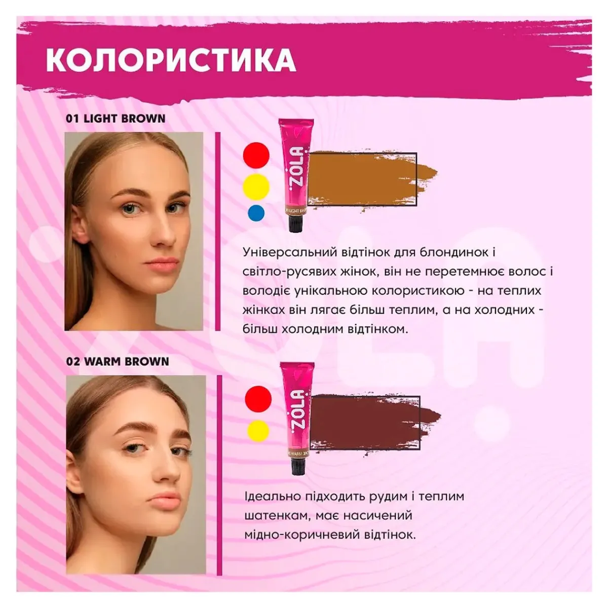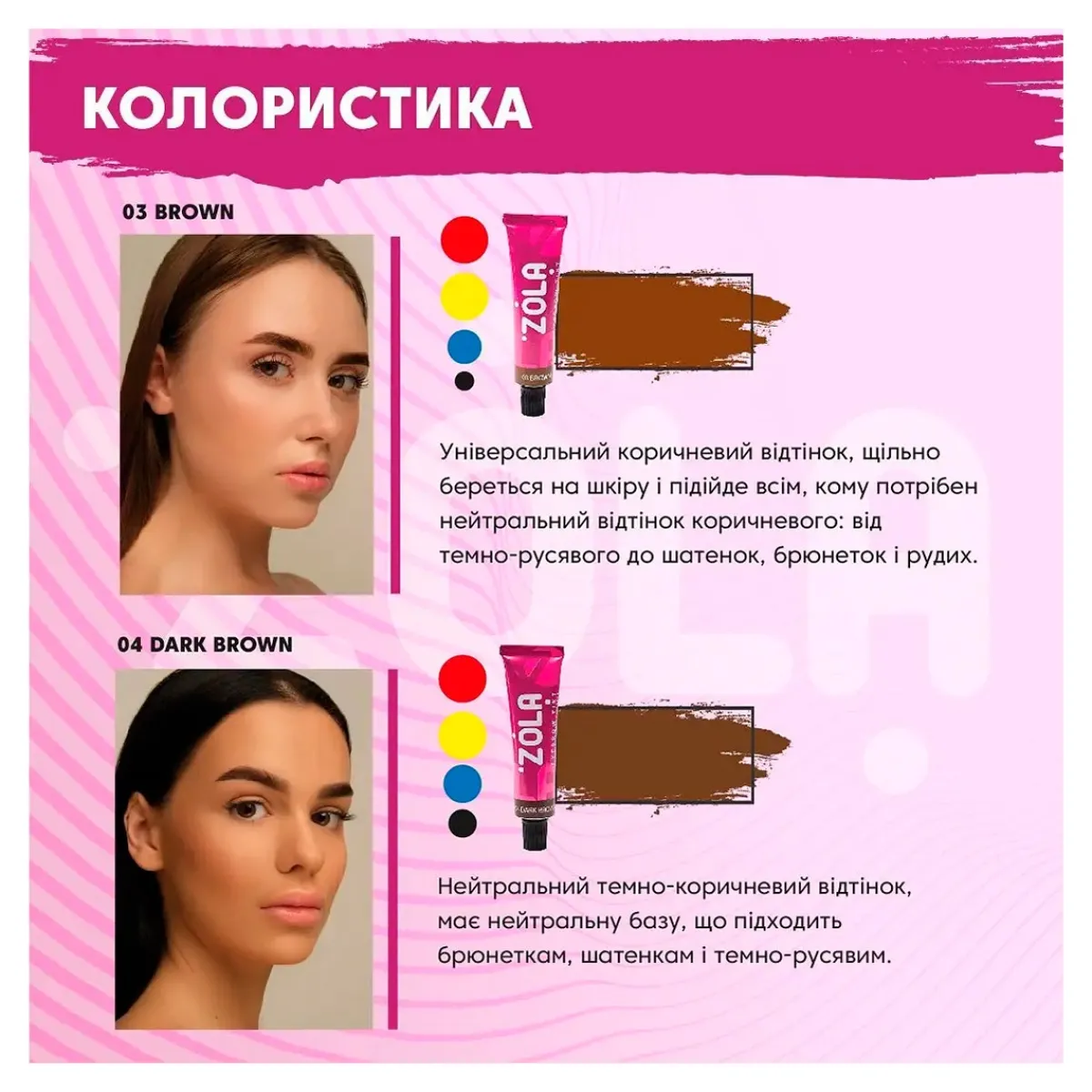 ZOLA est une marque ukrainienne spécialisée dans les cosmétiques pour les sourcils, les cils et le maquillage, crée en 2018 par la sourciliste et maquilleuse Tatiana Zolotashko. Les cosmétiques ZOLA ont été créés pour simplifier le travail des professionnels du sourcil, des cils et des maquilleurs mais également pour offrir des produits fiables à toutes les femmes. Les produits ZOLA ont été soigneusement conçus, ils allient technologie de pointe, haute qualité et design élégant. Chaque produit a été développé et sélectionné personnellement par Tatiana Zolotashko. En choisissant les cosmétiques Zola, vous êtes assurés de la qualité et de la haute efficacité de chaque produit. Les cosmétiques Zola sont hypoallergéniques et ne sont pas testés sur les animaux.