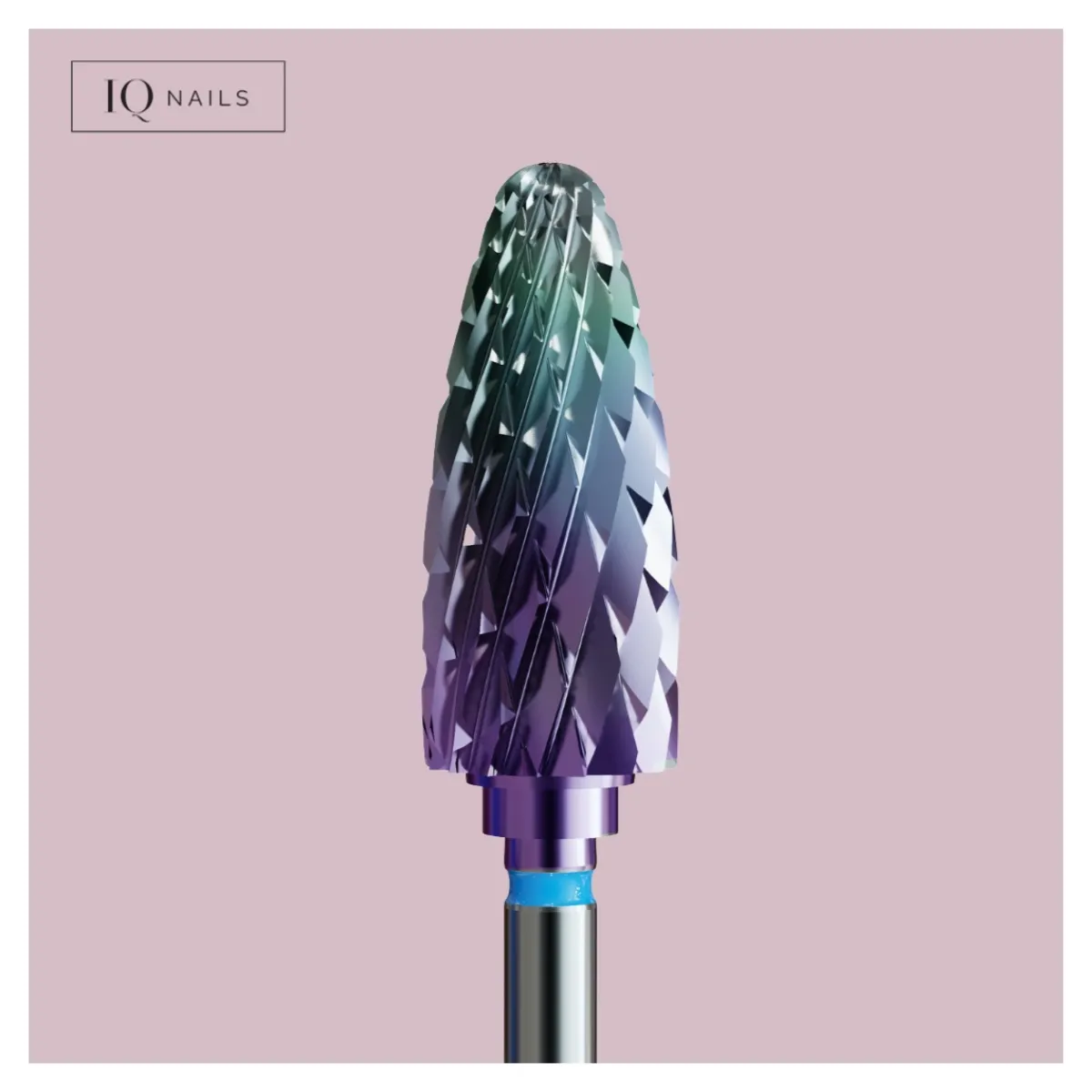 Fraise en carbure grain bleu (moyen) de la marque IQ Nails. Embout arrondi sécurisé aux dents croisées permettant le retrait rapide du semi-permanent, du gel, de la résine et de l’acrygel. Ne chauffe pas pendant la dépose et le ponçage. Cet embout est également idéal pour travailler sur les cors, les callosités et les ongles avec mycose. Vous pouvez également utiliser cette fraise pour raccourcir les ongles et travailler le dessous de l’ongle. Diamètre de la tête : 6 mm. Longueur de la tête : 14 mm. Largeur de la tige : 2,35 mm. La fraise a un revêtement spécial NANO caméléon qui garantit :