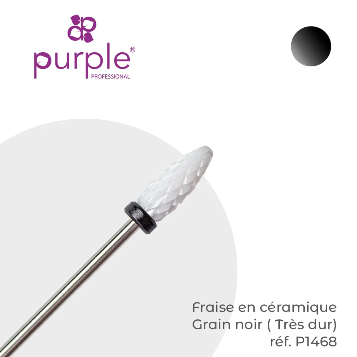 Fraise en céramique grain noir (très dur). Embout arrondi sécurisé. Marque Purple. Idéale pour la dépose d…