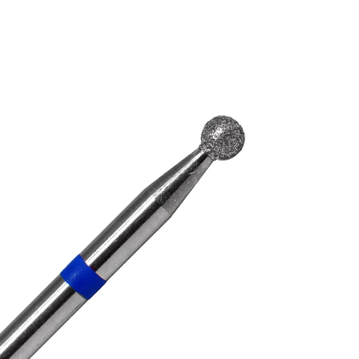 Fraise en diamant forme boule. Grain bleu (Moyen) parfait pour l’ongle avec beaucoup de cuticules. Diamètre : 0,27 cm. S’utilise pour la coupe des cuticules sans pince à envies en technique de manucure russe.