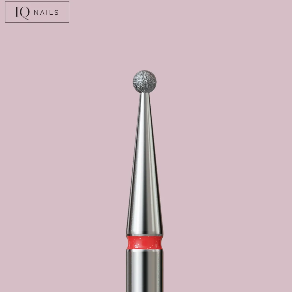 Fraise en diamant forme boule grain rouge (doux) de la marque IQ Nails. S’utilise pour la coupe des cuticules sans pince à envies en technique de manucure russe. Elle permet également de polir la peau et de retirer les callosités sur le pourtour de l’ongle. Diamètre de la tête : 2,1 mm.