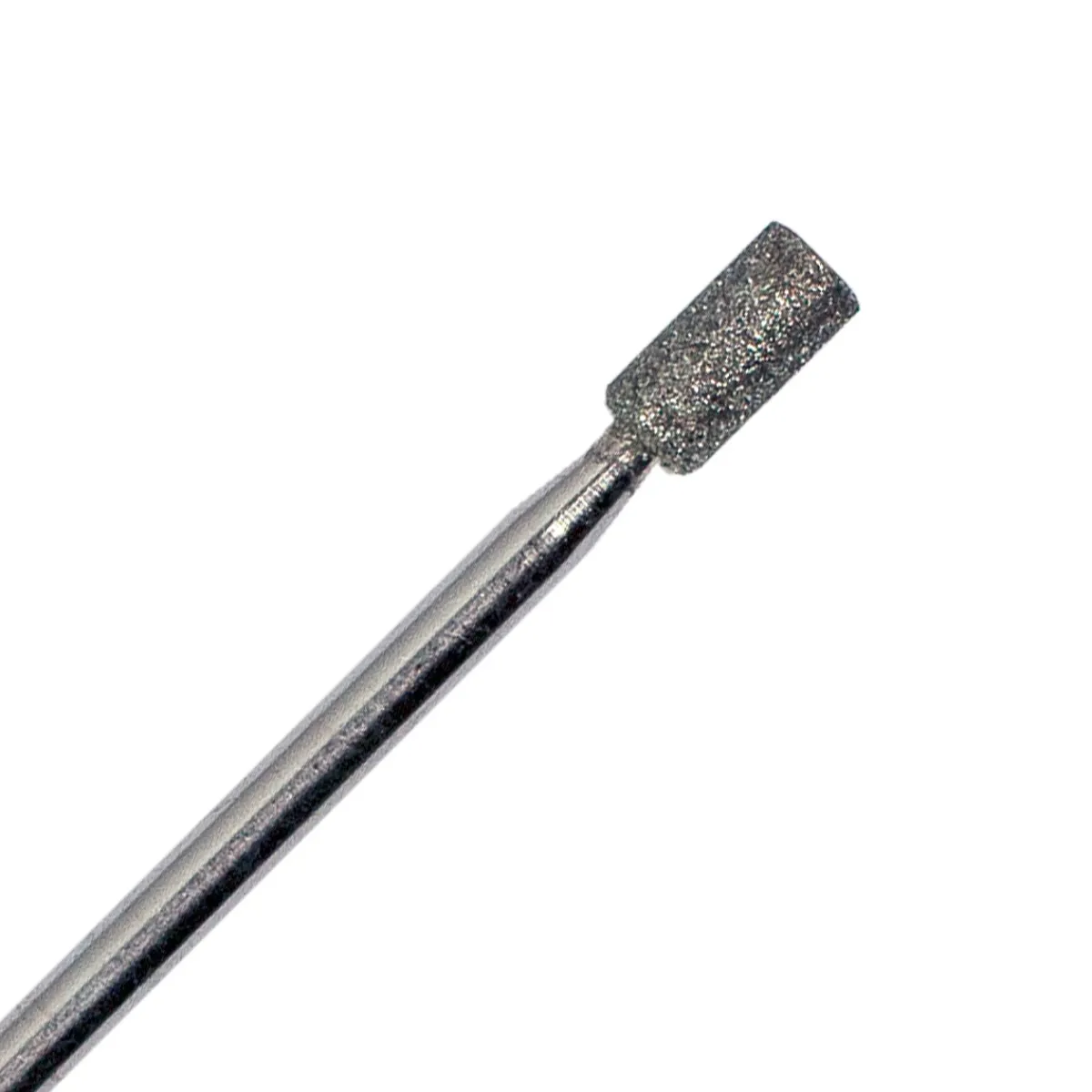 Fraise manucure Russe en diamant forme cylindre. Grain bleu (moyen). Marque Purple. Diamètre : 3,2 mm et longueur de la tête : 6,3 mm. S’utilise pour la préparation de la plaque de l’ongle, pour éliminer et nettoyer les cuticules ainsi que pour les callosités. Cette fraise permet d’optimiser l’adhésion du gel à l’ongle naturel et d’éviter les décollements. Convient pour les mains et les pieds.
