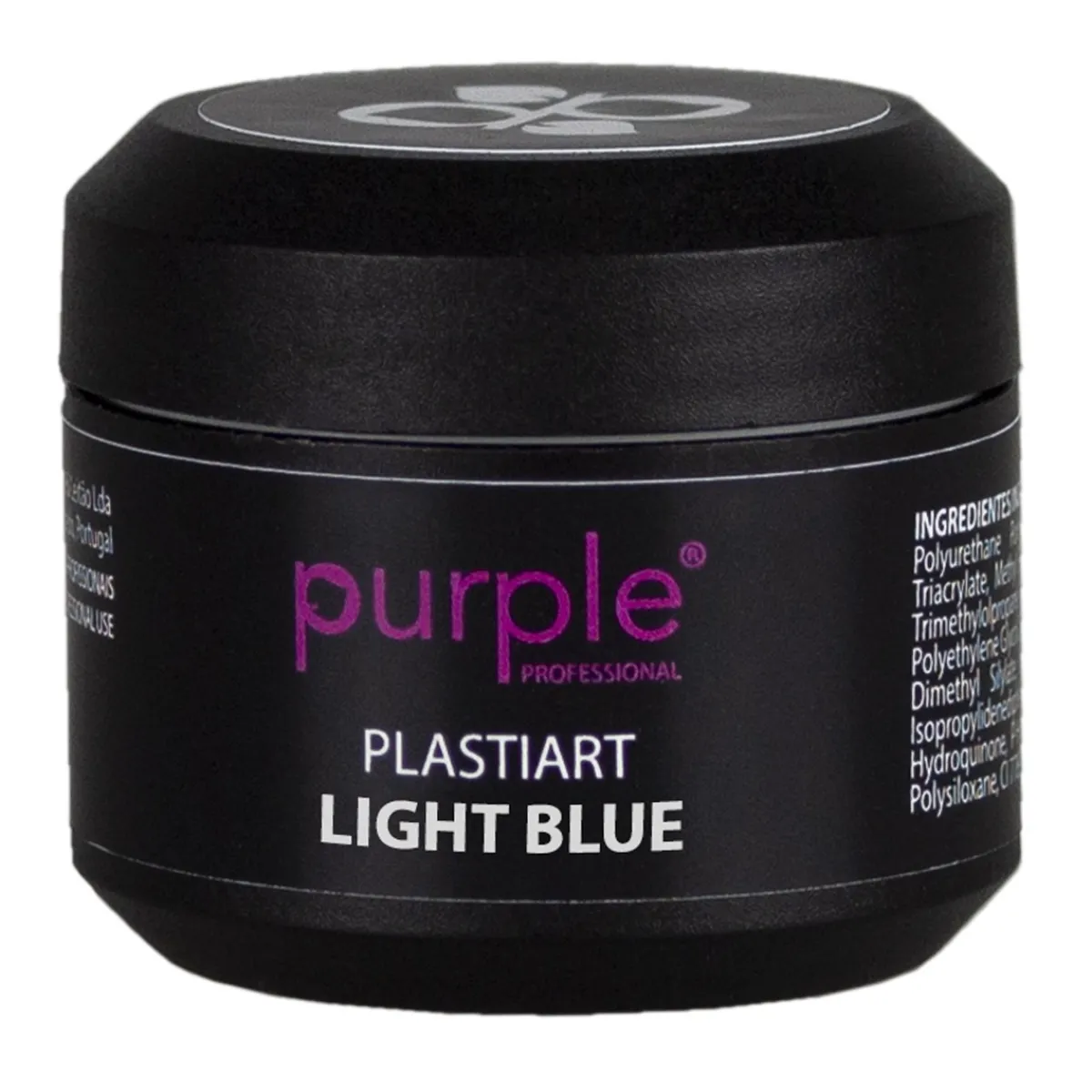 Gel Plastiart Bleu Clair de 5 gr de la marque Purple. Le gel Plastiart est utilisé pour les créations de Nail Art en relief. Catalysez 120 secondes sous lampe LED et 180 secondes sous lampe UV.