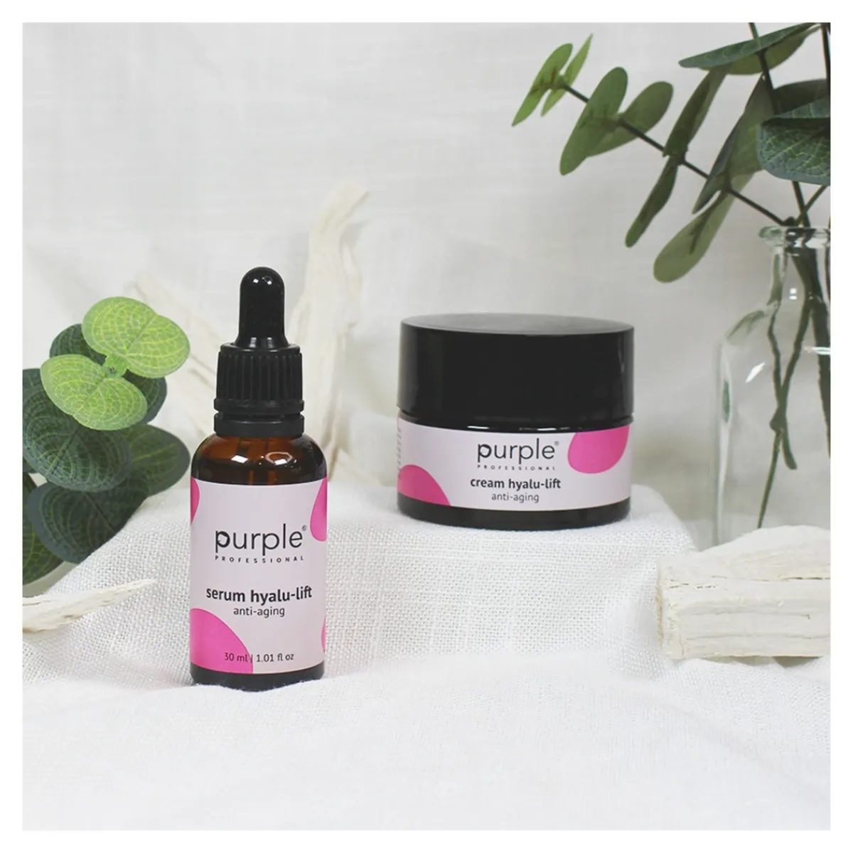 Le kit HYALU-LIFT 35+ de la marque Purple Professional comprend 2 produits de soin pour le visage et une huile pour les cuticules offerte :