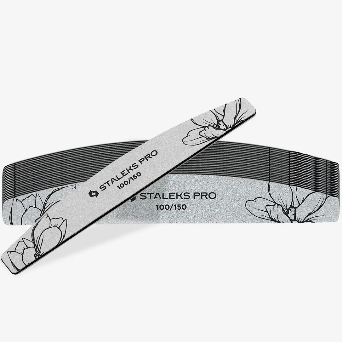 Limes minérales demi-lune EXPERT 40 grain 100/150 de chez Staleks. Lot de 25 pièces. Ces limes permettent de corriger soigneusement la forme des ongles naturels et artificiels sans abimer la plaque de l’ongle et sans y former de microfissures. Un revêtement spécial empêche le colmatage de l’abrasif par la poussière organique pendant l’utilisation. Une petite couche de mousse réduit la pression sur la plaque de l’ongle. Base en plastique souple. L’abrasif de haute qualité Expert White conserve longtemps ses propriétés. Pour manucure et pédicure.