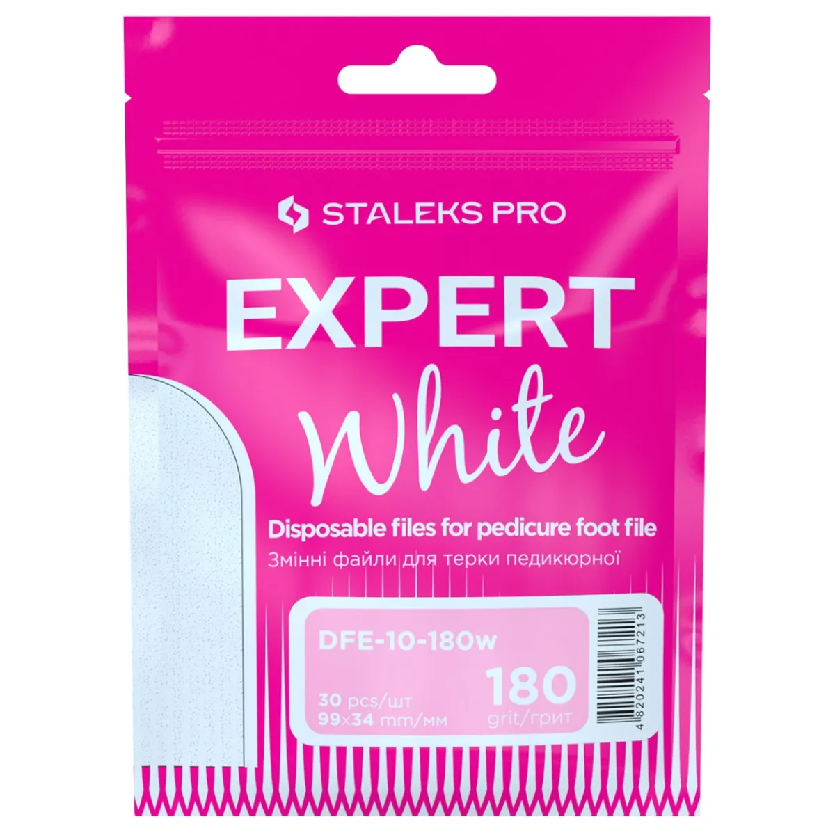 Limes Recharges Pédicure Blanches Grain 180 EXPERT 10 de chez Staleks. Lot de 30 pièces. Elles se collent sur la base métallique pédicure Staleks MBE-10 (non fournie).