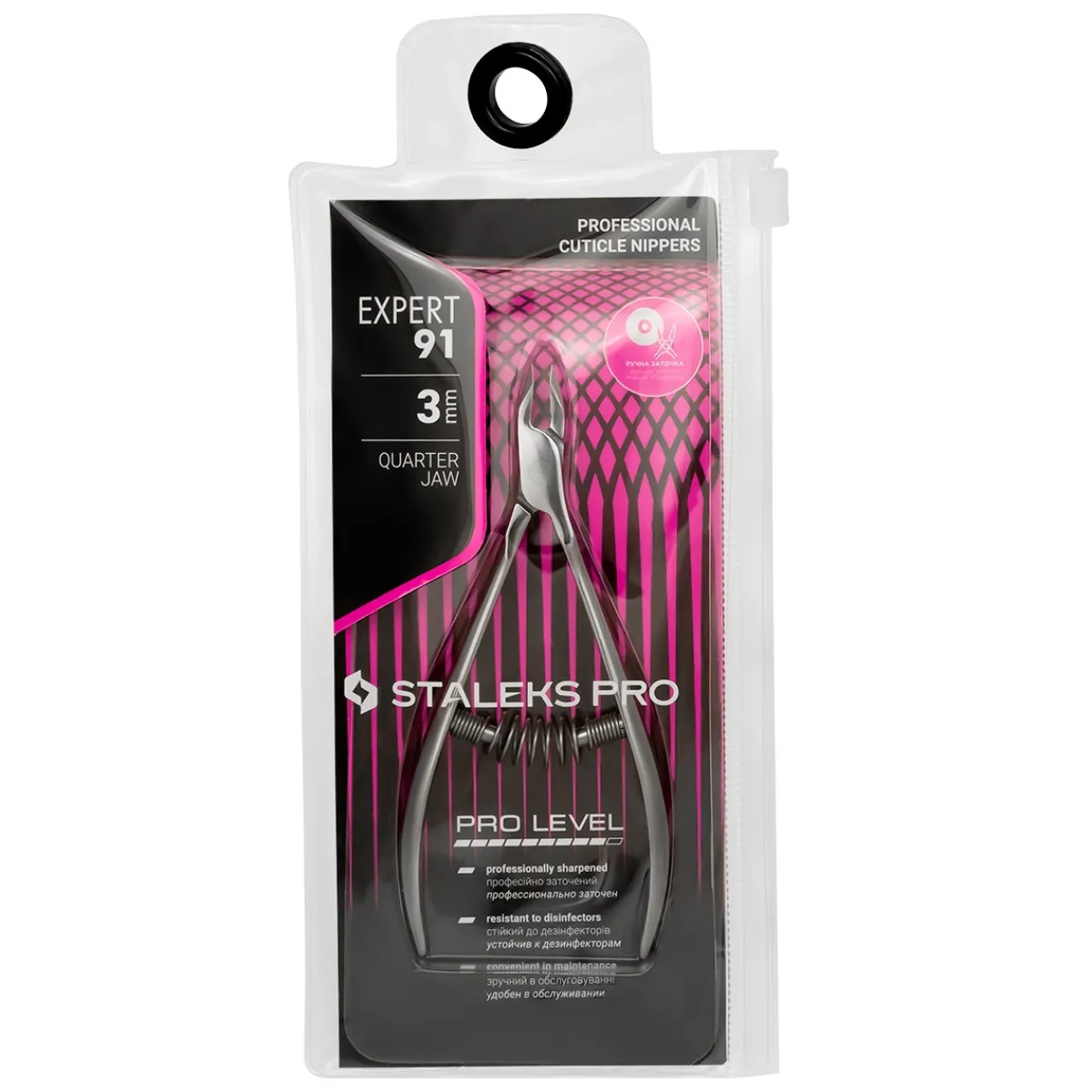 Pince à cuticules professionnelle Expert 91 – 3 mm de chez Staleks. Conçue pour retirer les petites peaux du pourtour de l’ongle en toute sécurité grâce à son excellente qualité de coupe.