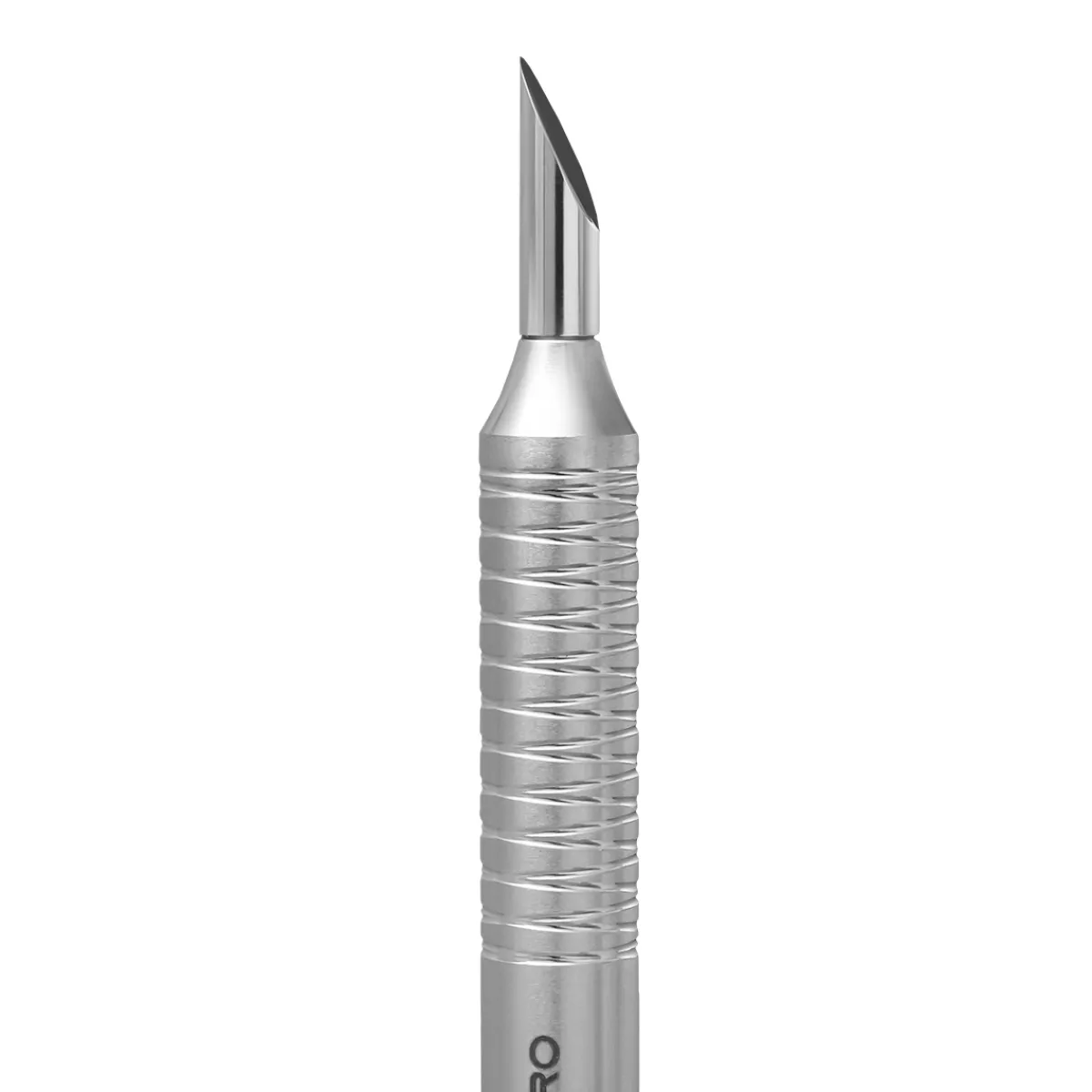 – Partie arrondie en biais « pusher » pour soulever et pousser la cuticule en vue de son élimination ultérieure.