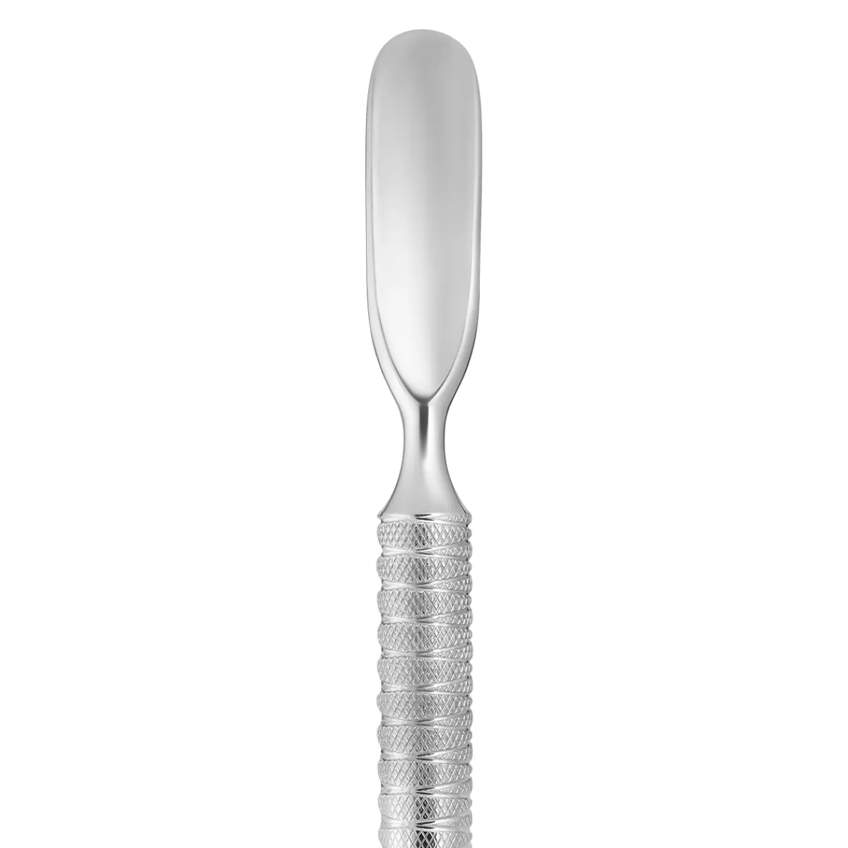 – Partie arrondie « pusher » : pour soulever et pousser la cuticule en vue de son élimination ultérieure, grâce à sa grande courbure reprenant la forme de l’ongle.