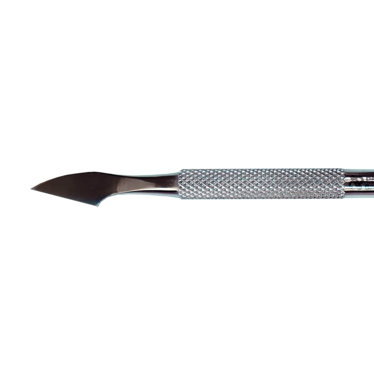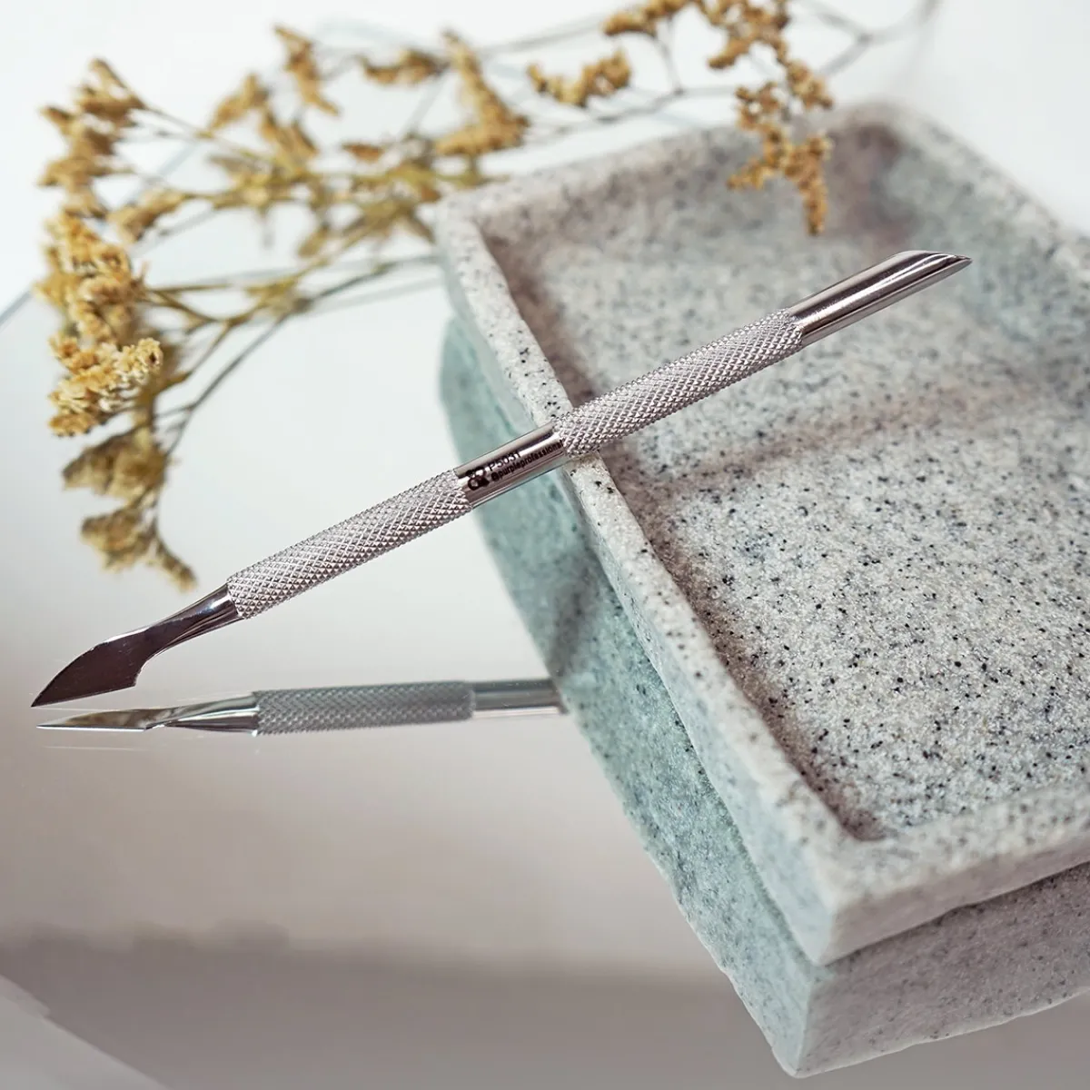 Repousse cuticules Premium 15 de Purple Professional en acier inoxydable. Pusher avec une spatule arrondie en biais d’un côté et une lame pointue de l’autre. Le côté arrondi s’adapte à la forme de l’ongle permettant de soulever et de pousser les cuticules pour son retrait ultérieur. La lame tranchante permet quant à elle d’éliminer les cuticules qui adhèrent à l’ongle, et de nettoyer l’ongle en surface, au niveau des replis latéraux et sous le bord libre. Convient pour la manucure russe et combinée. Design fonctionnel, précis et robuste. Conçu pour un usage professionnel. Il peut être soumis à tous types de désinfection.
