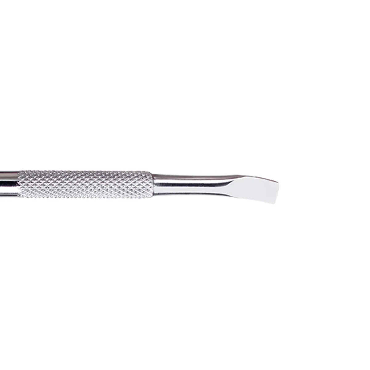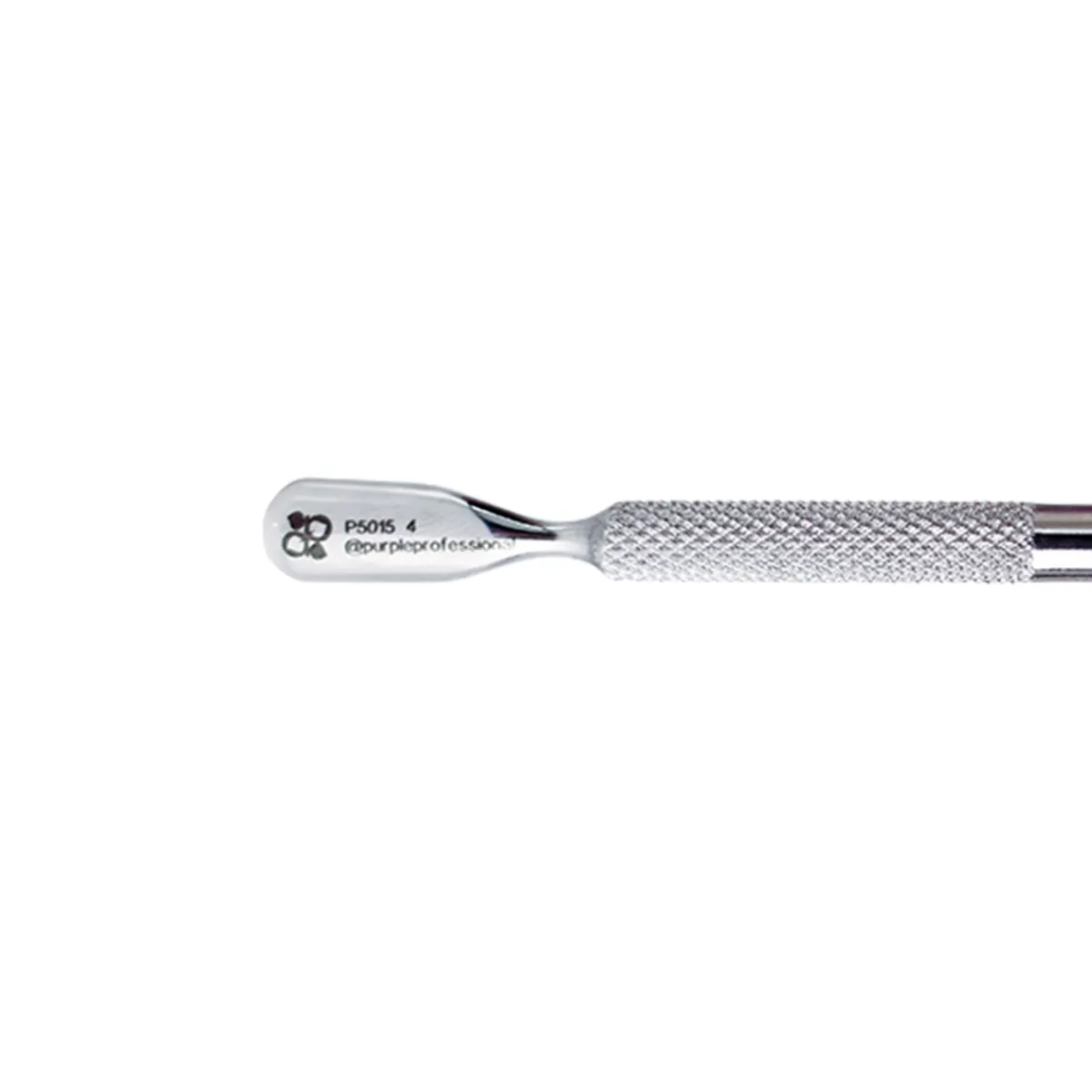 Repousse cuticules Premium 4 de Purple. Pusher avec une grande spatule arrondie d’un côté d’un côté et une lame en biais de l’autre. La spatule longue et arrondie s’adapte à la forme de l’ongle permettant de soulever et de pousser les cuticules pour son retrait ultérieur. La lame permet quant à elle d’éliminer les cuticules qui adhèrent à l’ongle, et de nettoyer l’ongle en surface, au niveau des replis latéraux et sous le bord libre. Convient pour la manucure russe et combinée. Design fonctionnel, précis et robuste. Conçu pour un usage professionnel. Il peut être soumis à tous types de désinfection. Fini mat.