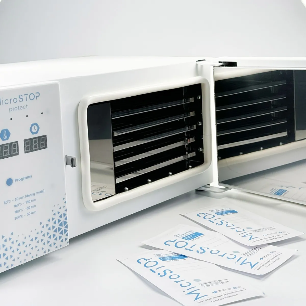 Le stérilisateur MicroSTOP Protect est un stérilisateur à chaleur sèche et à chargement horizontal.