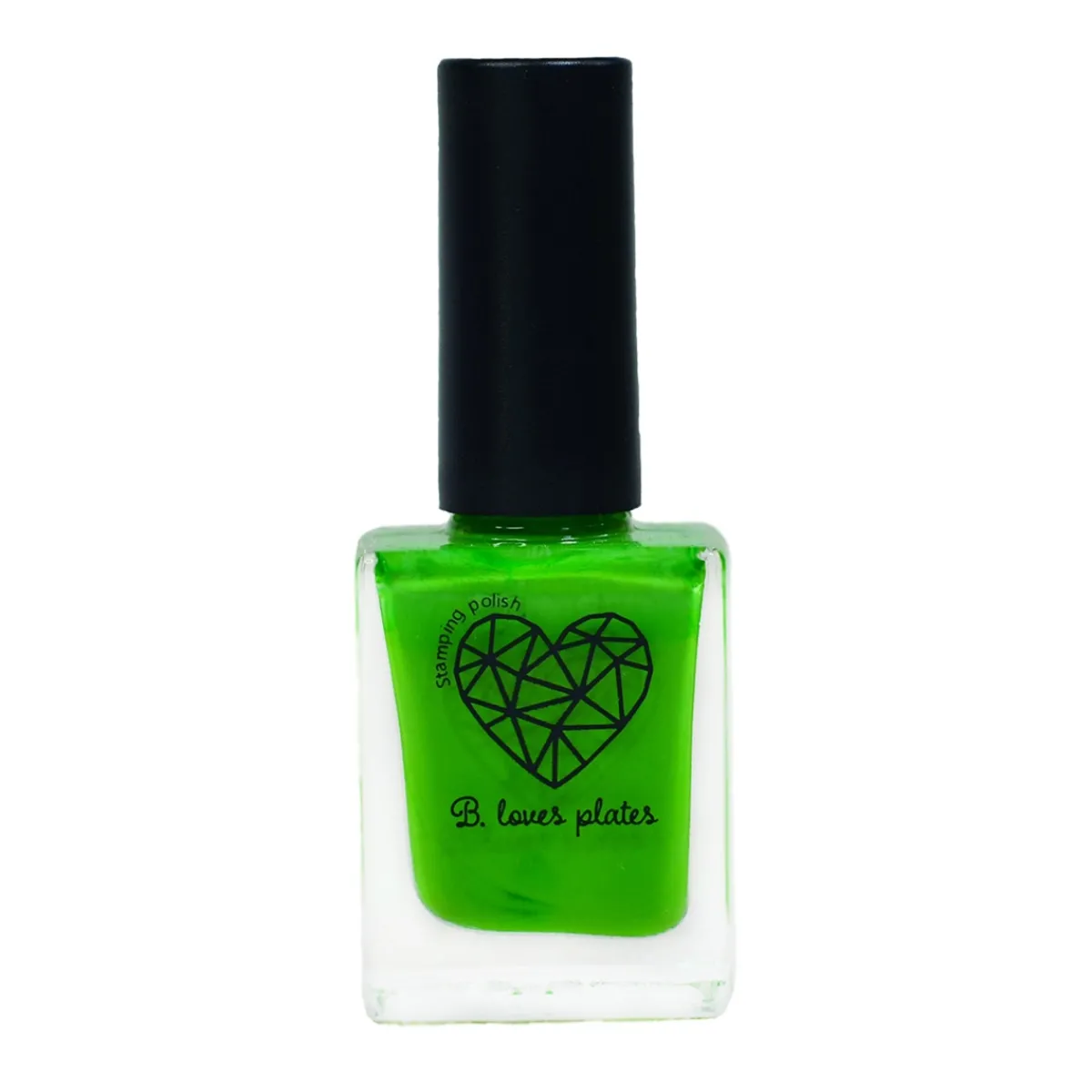 Vernis de stamping de 10 ml. Les vernis de Stamping B. Loves Plates ont été fabriqués avec amour pour le stamping. Chaque détail (conception du flacon, pinceau, texture et ingrédients) a été soigneusement étudié avant sa fabrication. Ces vernis à ongles sont très pigmentés et un peu épais, c’est pourquoi ils sont parfaitement adaptés au stamping. Le flacon de forme rectangulaire est pratique pour le stockage. Le bouchon repose idéalement dans la main, il est résistant au dissolvant pour vernis à ongles, il ne se raye pas et restera en parfait état longtemps. Grâce au pinceau large, vous pouvez facilement mettre la quantité exacte de vernis à ongles sur le motif. N’oubliez pas de toujours garder vos vernis propres, pour que le vernis à ongles ne sèche pas et ne s’épaississe pas trop vite.
